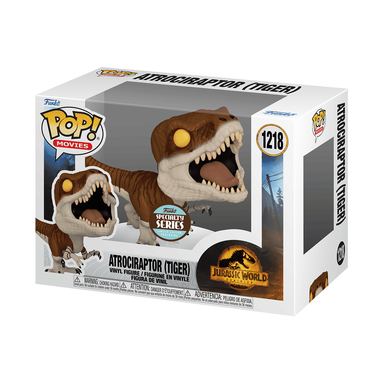 A big discovery is roaring your way! Capture this exclusive Pop! Atrociraptor (Tiger) for your personal exhibit and give this ferocious creature a place to hunt in your Jurassic World: Dominion collection. Vinyl figure is approximately 3.6 in (9.1 cm) tall.