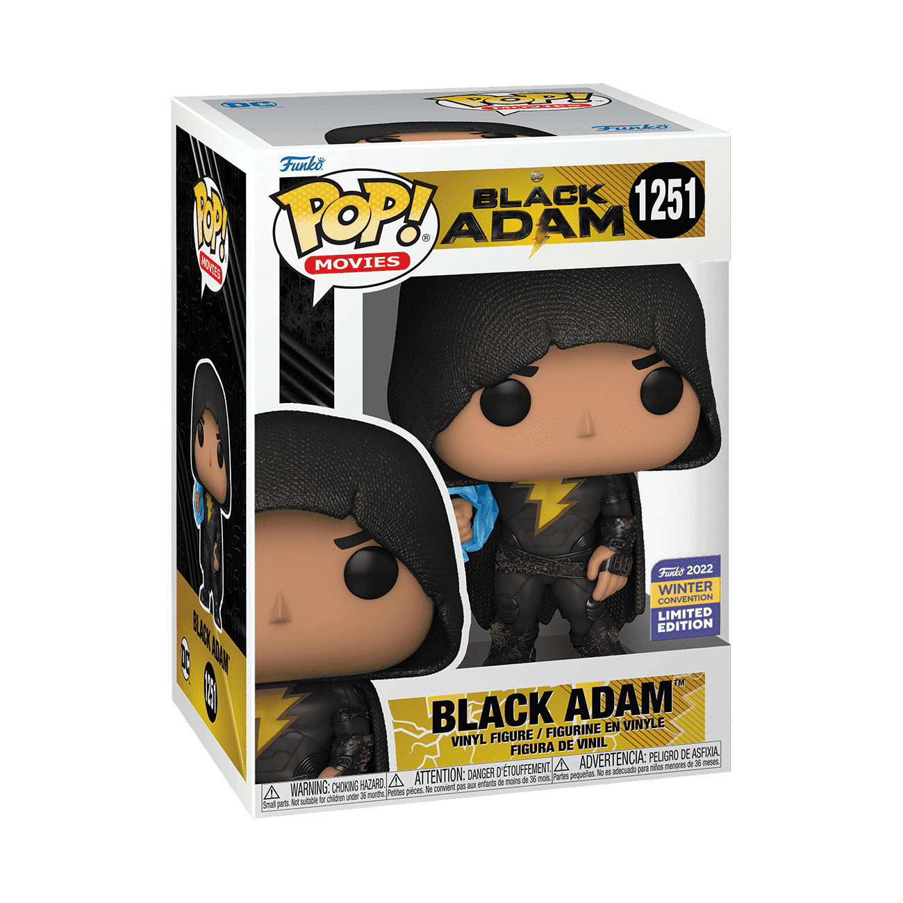 Raise your DC collection to new heights with Pop! Black Adam. Pop! Black Adam makes an electrifying appearance, harnessing blue lightning and wearing a cloak. Unleash the power of this 2022 CCXP exclusive Pop! Black Adam and change things up in your set. Vinyl figure is approximately 3.88 in (9.9 cm) tall.