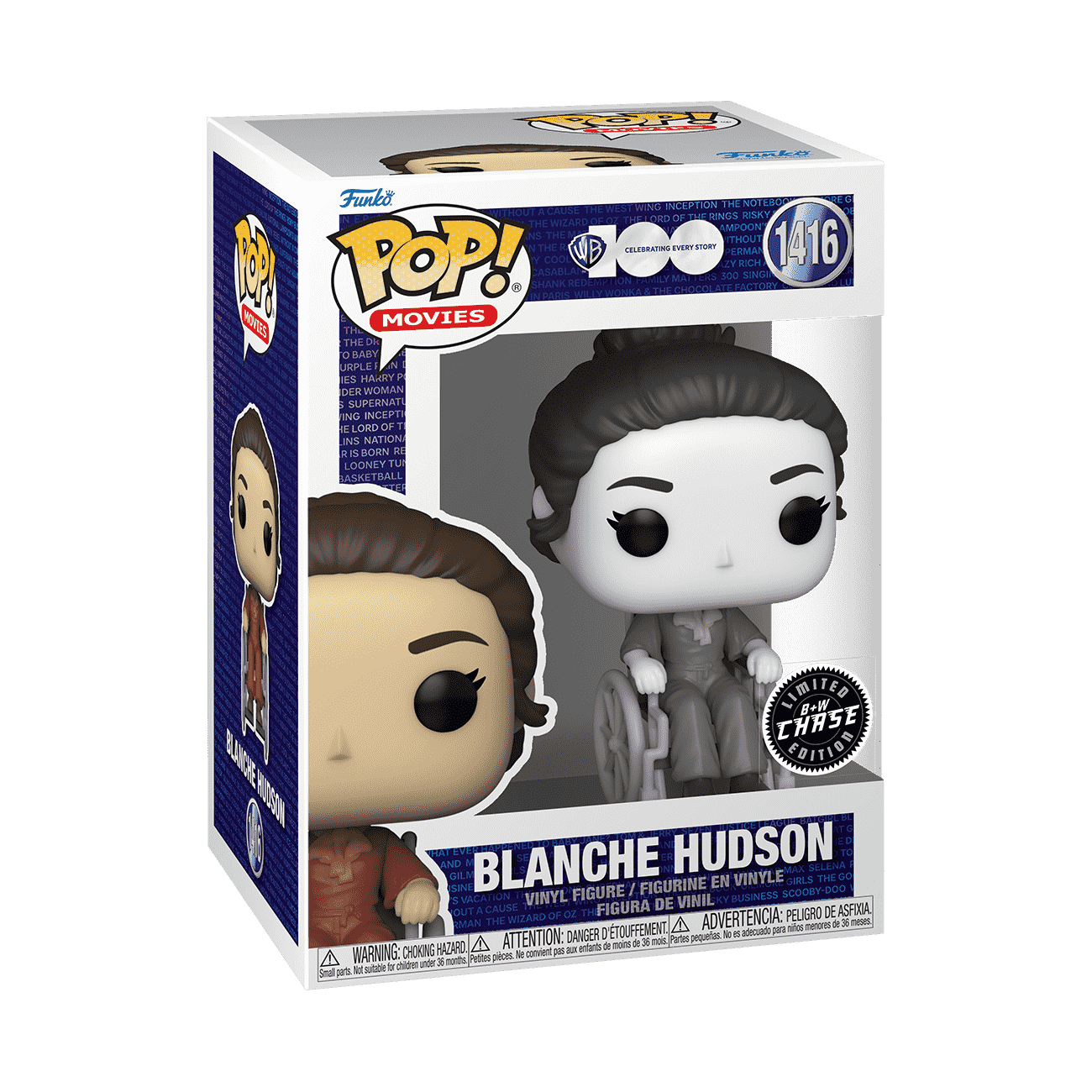 “You mean all this time we could’ve been friends?” Pop! Blanche Hudson is plotting her next move as she seeks refuge in your collection. Bring this infamous collectible into your care to celebrate the cult classic film, Whatever Happened to Baby Jane?, as part of Warner Bros. 100th Anniversary. There’s a 1 in 6 chance that you may find the black-and-white chase of Blanche Hudson. Vinyl figure is approximately 4.2 in (10.7 cm) tall.