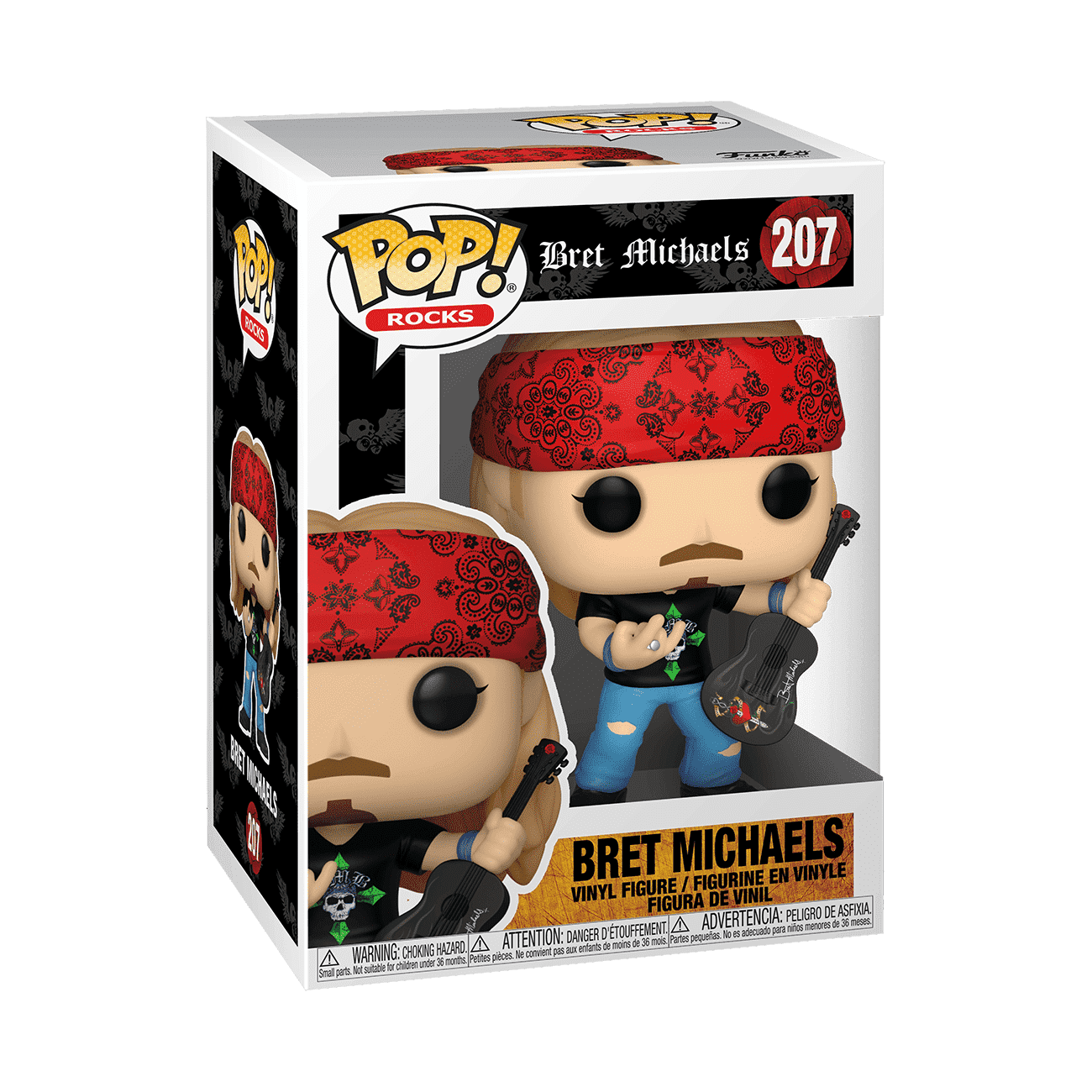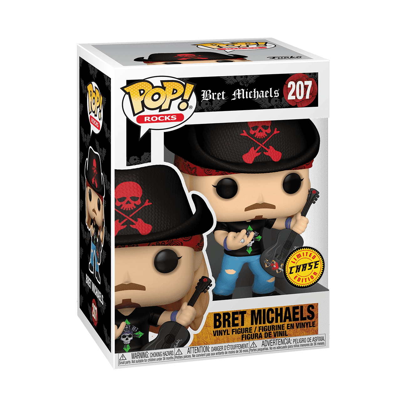 Bring a touch of rock and country music to your collection with a Pop! of Bret Michaels. There's a 1 in 6 chance you'll find the chase variant of Bret Michaels wearing his hat instead of his bandana. Vinyl figure is approximately 4.5 in (11.4 cm) tall. Please note: Chase variants are shipped at random. Receiving a chase with purchase is not guaranteed.