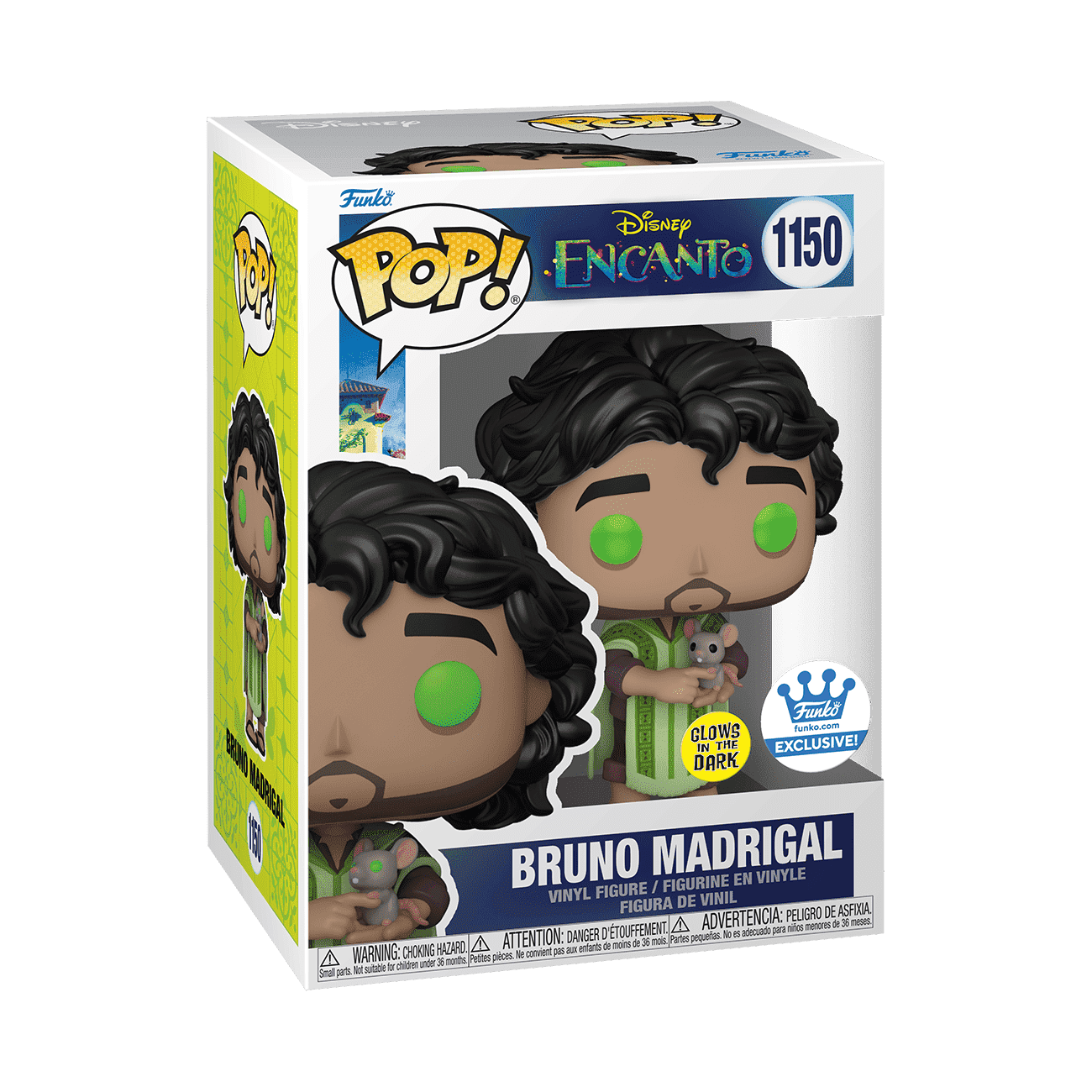 Save the magic of your home with Bruno! Reunite the Madrigal family with this exclusive, glow-in-the-dark Pop! Bruno Madrigal from Disney’s Encanto. Vinyl figure is approximately 4 in (10.2 cm) tall.