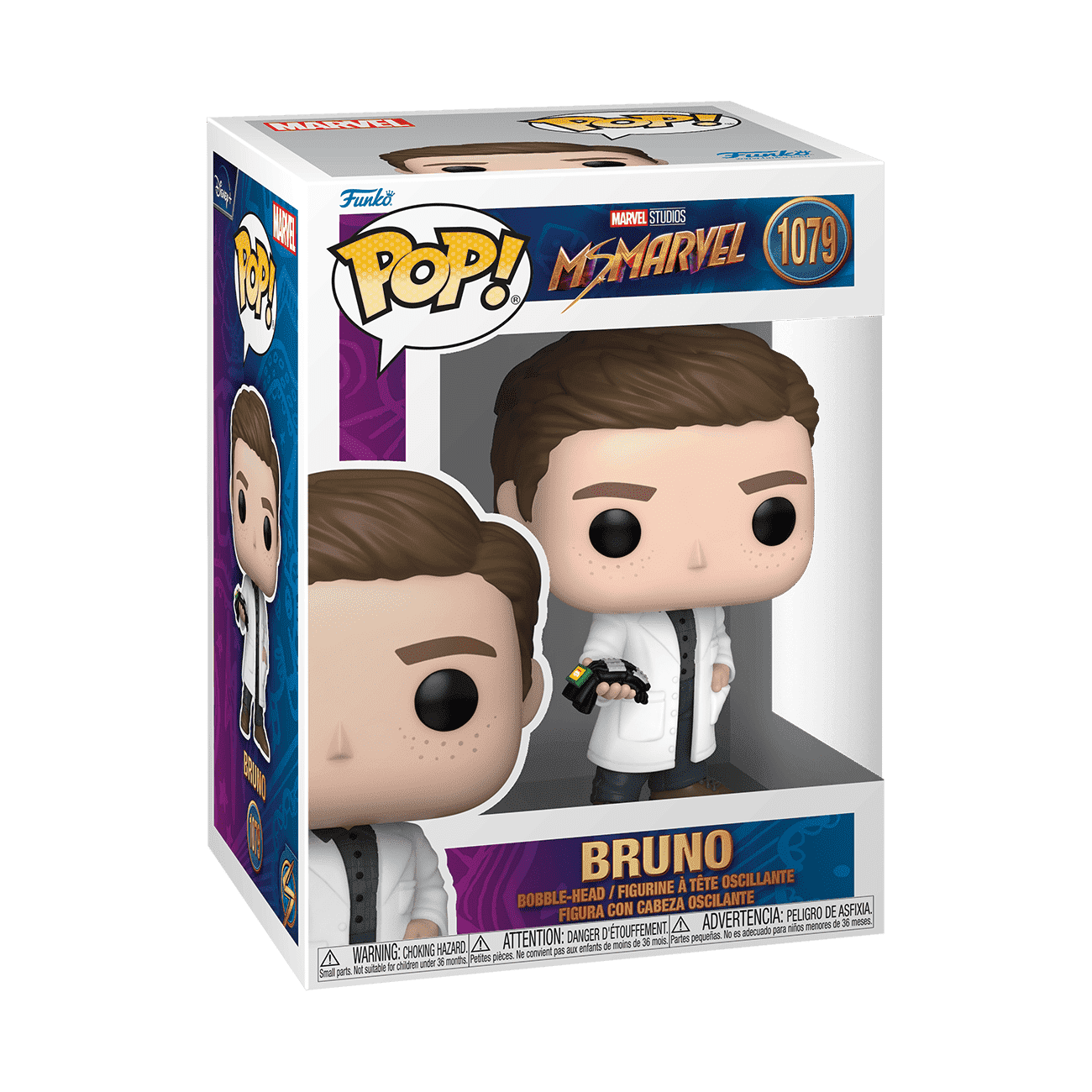 When a super hero fan becomes a superhero herself, the possibilities seem endless for Kamala Khan! Help Kamala (aka Ms. Marvel) join her super hero idols and disguise her tracks in your Marvel Studios' Ms. Marvel collection by bringing her friend in to help as Pop! Bruno Carrelli. Vinyl bobblehead is approximately 4.15 in (10.5 cm) tall.
