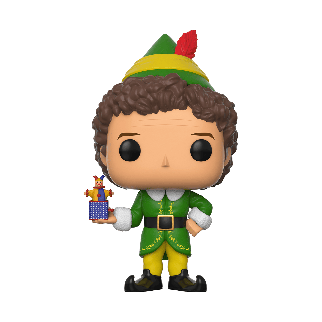 Buddy the elf is overjoyed and very prepared for the holidays. He's hoping to see his friend Santa Claus. Buddy is also looking forward to making his special spaghetti (topped with maple syrup among other delights), bake sugar cookies, and of course decorate for the festivities. Bring home Pop! Buddy The Elf to get his expert opinion on your decorations. He'll bring the maple syrup, unless your lucky enough to catch him in the rare, 1 in 6, chance of him holding a Jack-in-the-box toy. Vinyl figure is approximately 5.25 in (13.3 cm) tall.