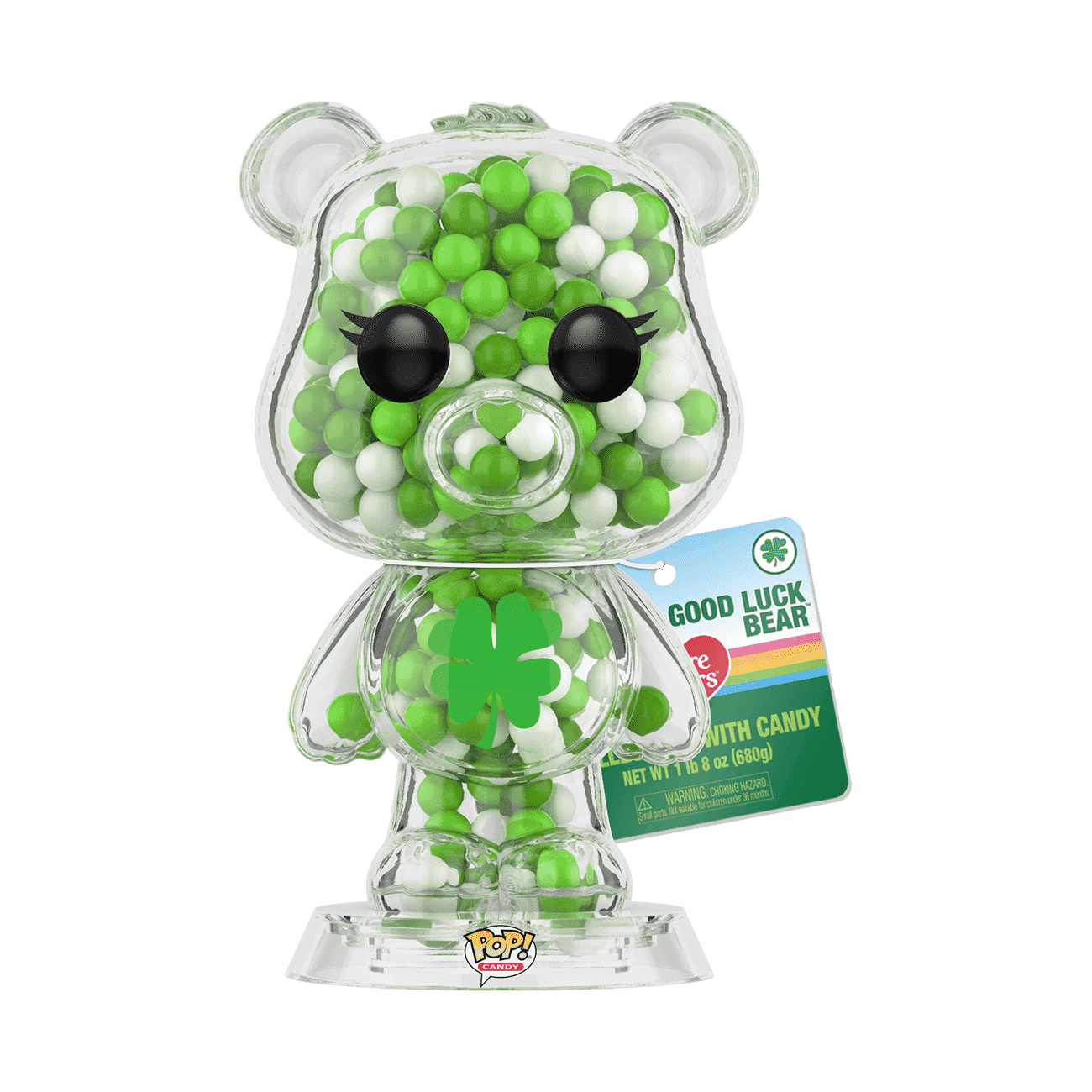 Treat your sweet tooth with Pop! Candy Good Luck Bear™! This friendly bear is here to bring good fortune and prosperity to your Care Bears™ set. This collectible features a clear, molded casing filled with vibrant dark green, light green, and white, pressed sugar candies! This candy container is made with BPA free plastic and snaps open at the figure’s base for on-the-go snacking convenience! Whether you choose to open and enjoy or display sealed, Pop! Candy figures will add a bit of flavor to your collection and your palate! Plastic figure is approximately 4.15 in (10.5 cm) tall.