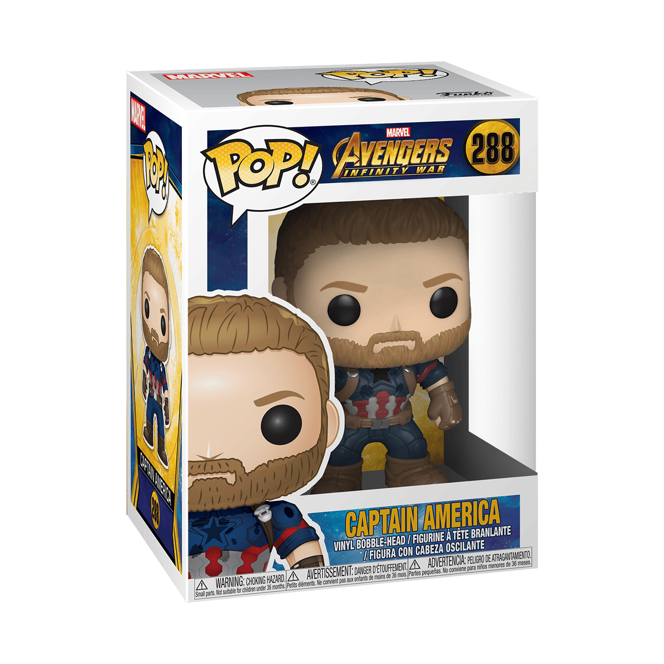 Complete your Avengers: Infinity War collection with Pop! Captain America. Vinyl bobblehead is approximately 4 in (10.2 cm) tall.