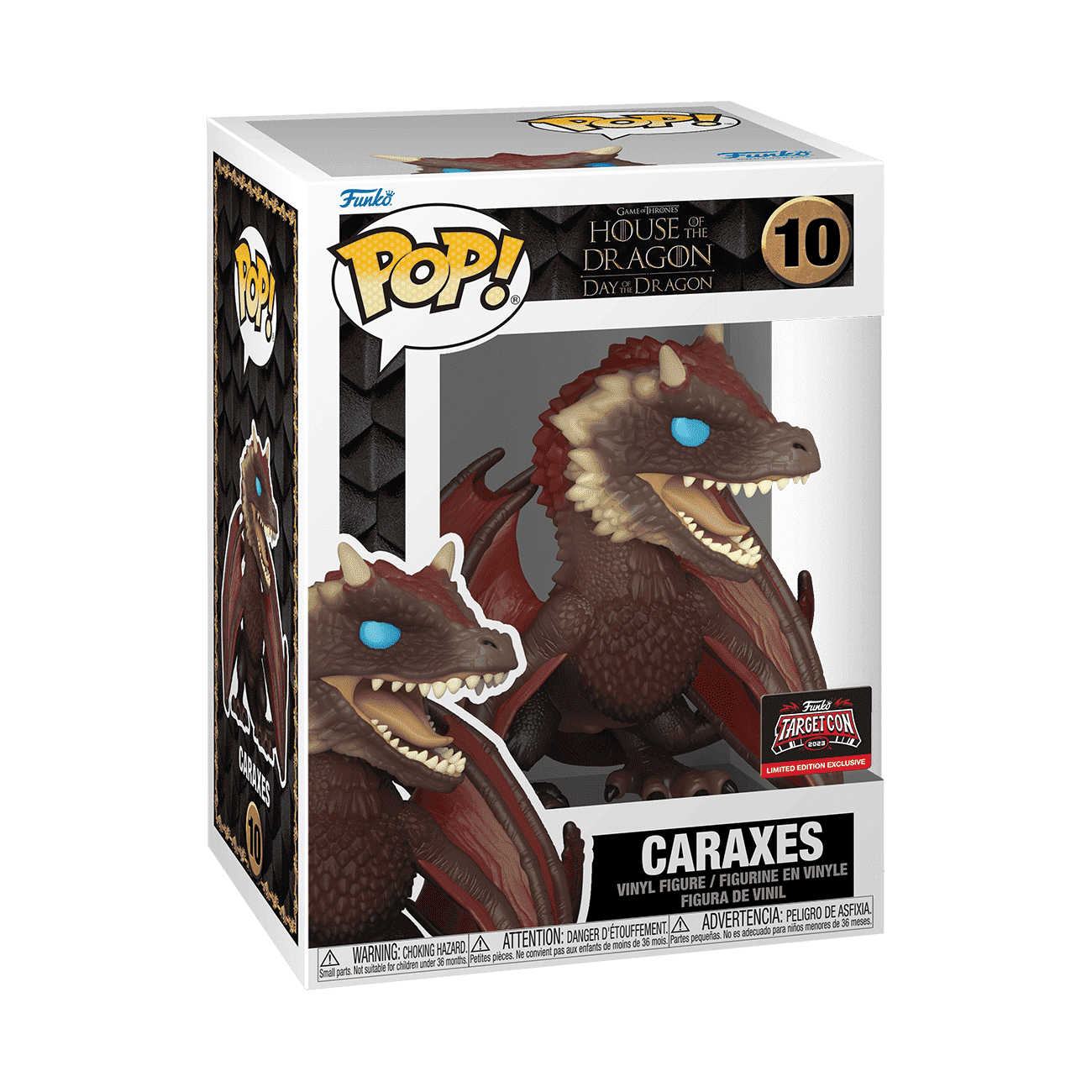 "Welcome to the Dance of Dragons! The pursuit of legacy begins, and Pop! Caraxes, Prince Daemon’s dragon, wants to land in your Game of Thrones collection. Help unite this exclusive dragon with Prince Daemon Targaryen and grow your Game of Thrones: House of the Dragon collection to a grand scale. Vinyl figure is approximately 3.9 in (9.9 cm) tall.