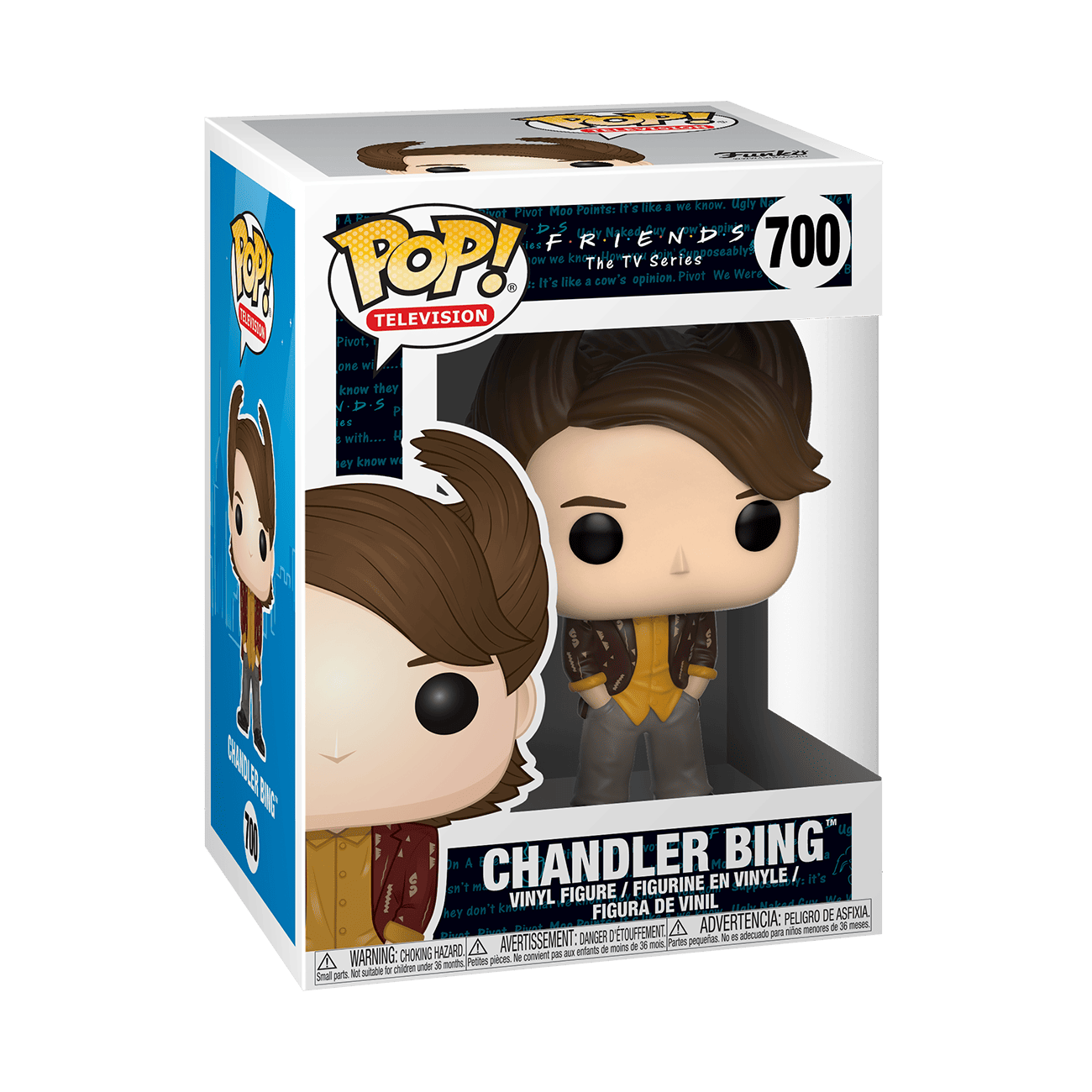 Whether you're at the Central Perk or just in the apartment, grab a cup of coffee and reminisce with Friends. Pop! Chandler is sure to cheer you up with his 80s hairdo. Collectible stands approximately 3.75 in (9.5 cm) tall.