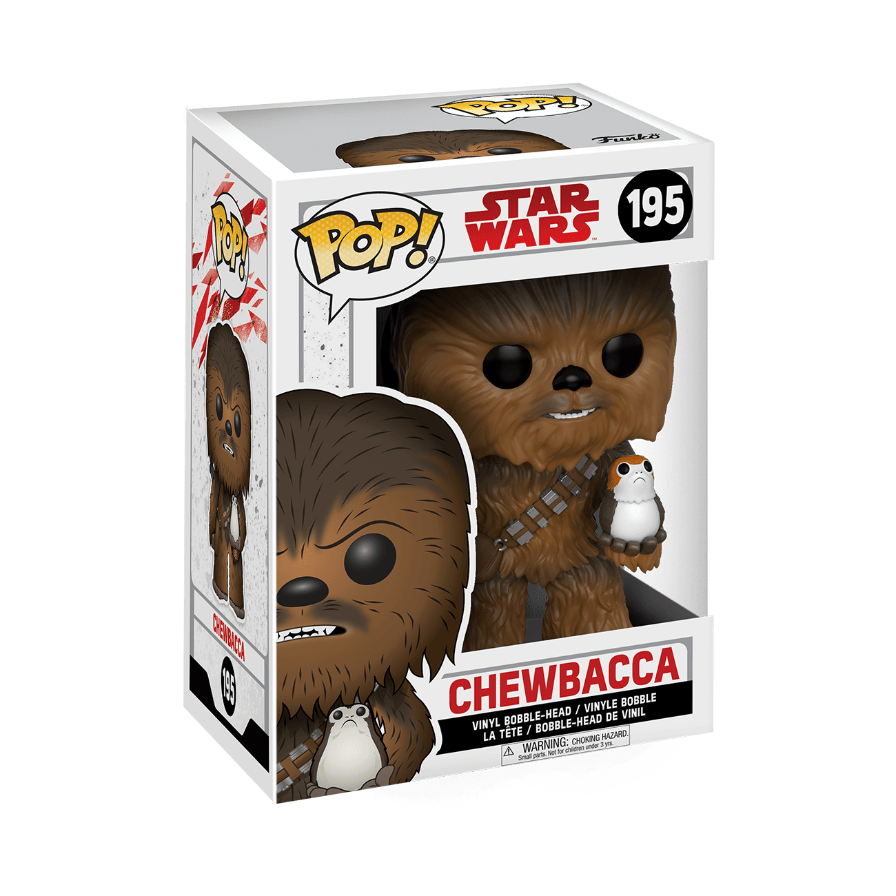 Celebrate the most stellar fandom of them all with the Star Wars™ The Last Jedi™ Pop! Chewbacca with Porg. Vinyl bobblehead is approximately 5 in (12.7 cm) tall.