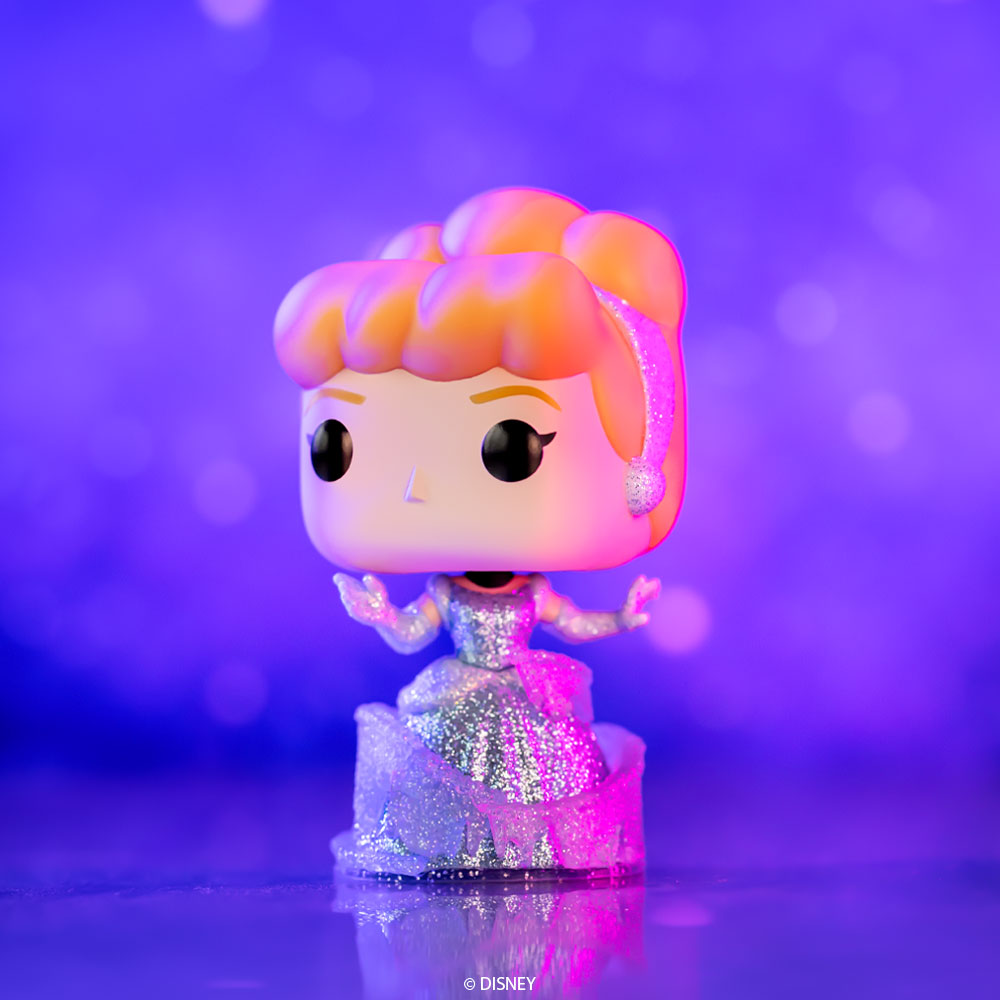 Pop! Cinderella can’t wait to dance the night away at the ball, and her Fairy Godmother has just the dress for the occasion. Celebrate Disney’s 100th Anniversary with this exclusive, Diamond Collection, mid-transformation gown. Swirls of magic shimmer around this graceful princess as she dances her way into your Cinderella collection. Vinyl figure is approximately 4.4 in (11.2 cm) tall.