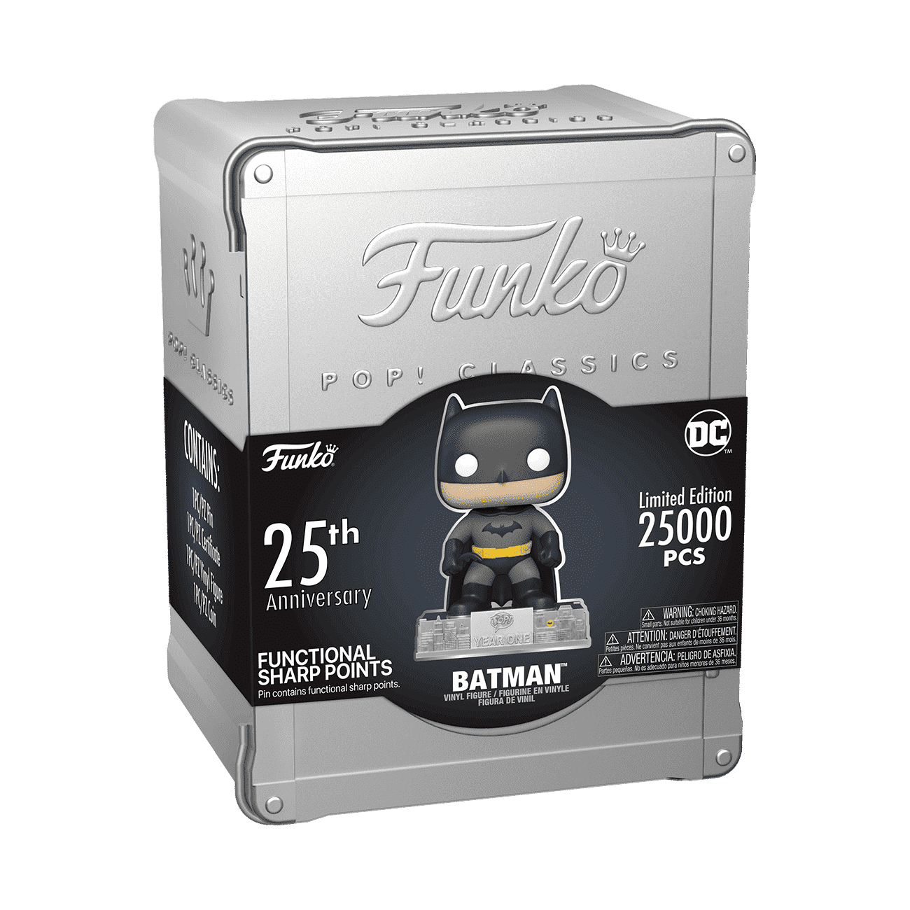 This Pop! Classics figure also includes an enamel Pop! Pin and a stainless-steel Pop! Coin, both featuring Pop! Batman’s face, as well as a foil Certificate Card detailing his biographical information. Only 25,000 of this limited-edition collectible were made! Vinyl figure is approximately 4.65 in (11.8 cm) tall.