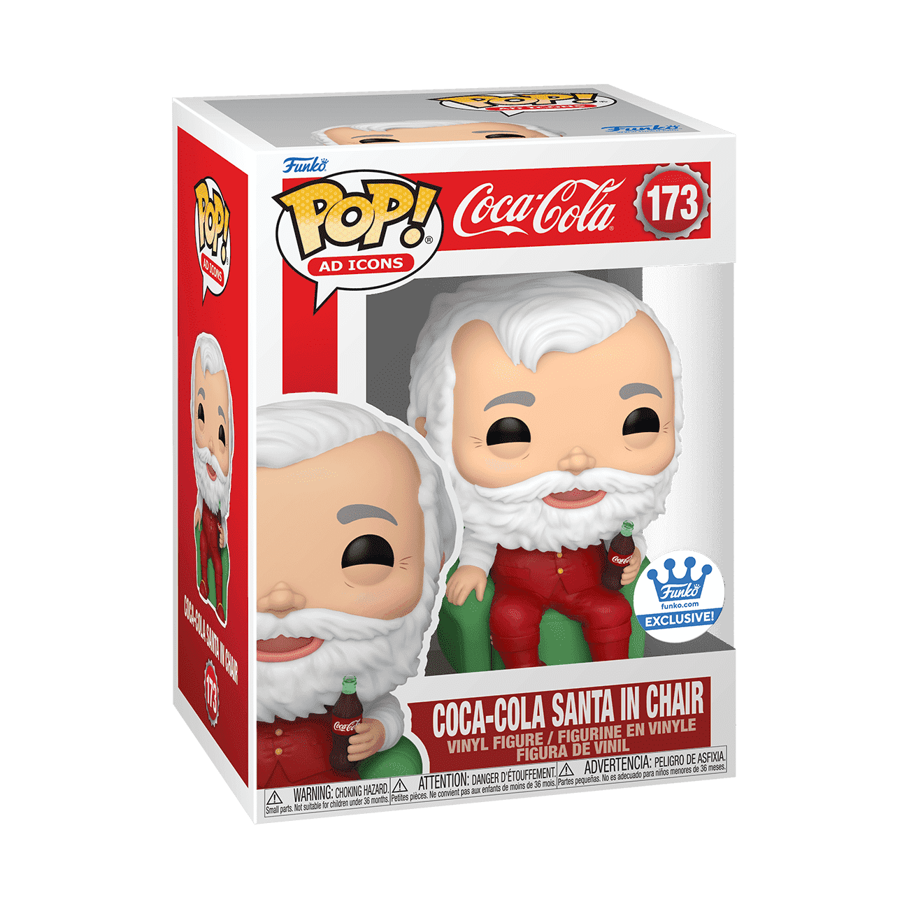 Reach the top of the nice list this year, and gift this Funko-exclusive Pop! Coca-Cola Santa in Chair to your loved ones. Pop! Coca-Cola Santa is styled after the vintage jovial Santa of the 1930s, complete with a Coca-Cola bottle in his hand. After a long day of getting ready for the holidays, Pop! Coca-Cola Santa relaxes in a comfy green chair. Leave a bottle of Coca-Cola out for Pop! Cola-Cola Santa, and expand your Pop! Ad Icons collection. Vinyl figure is approximately 3.82 in (9.7 cm) tall.