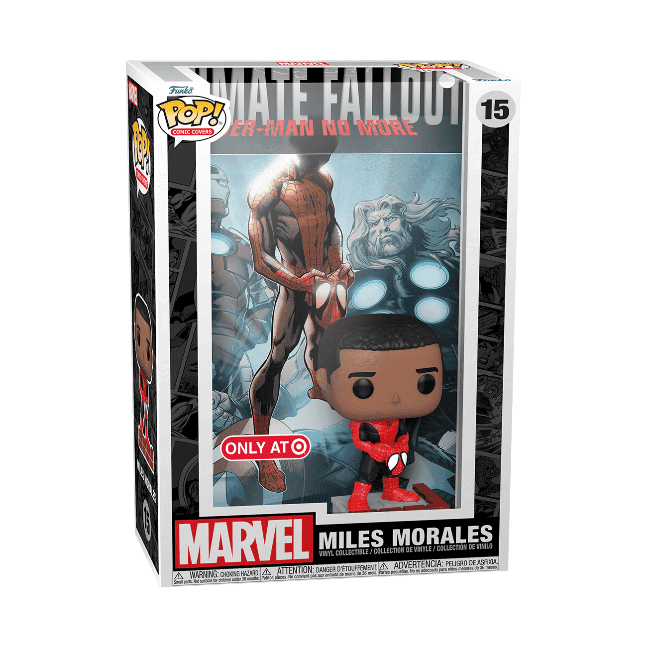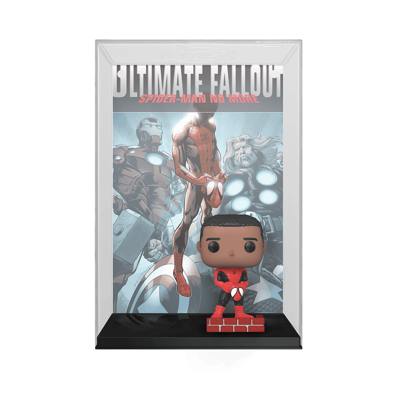 A new Spider-Man has arrived with the exclusive Miles Morales Pop! Comic Cover. Holding his mask in his hands, Pop! Miles Morales stands in front of the comic book cover art for Marvel’s Ultimate Fallout Volume 1 Issue 4. This unique collectible comes prepackaged in a protective case that can be hung on a wall or displayed with your comics. Who will this hero face in your Marvel collection?