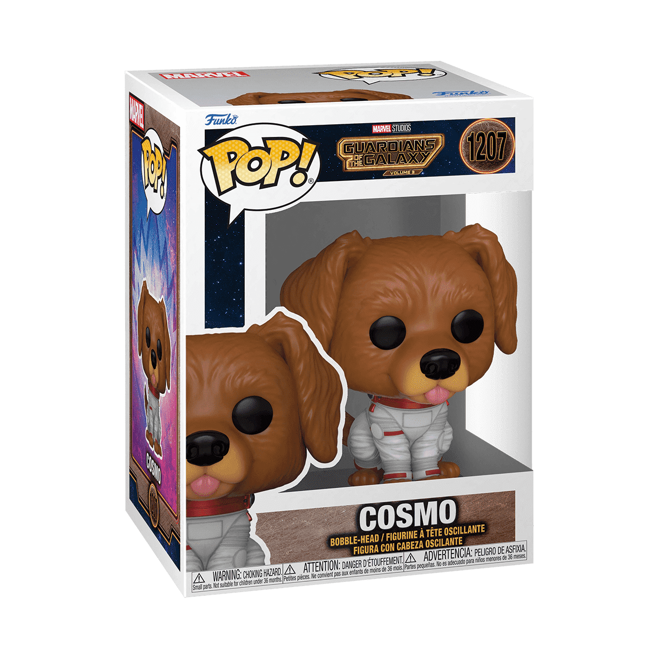 Take off on a galactic adventure with Pop! Cosmo the Space Dog on her mission with the Guardians of the Galaxy! Complete your Guardians of the Galaxy: Volume 3 collection with this cosmic canine. Vinyl bobblehead is approximately 3.15 in (8 cm) tall.
