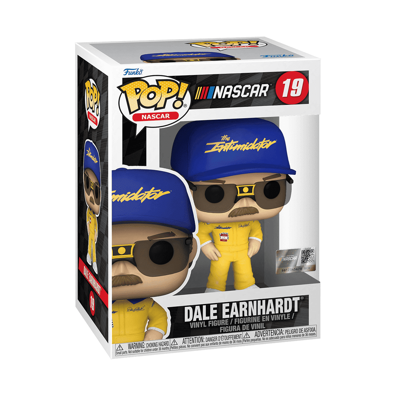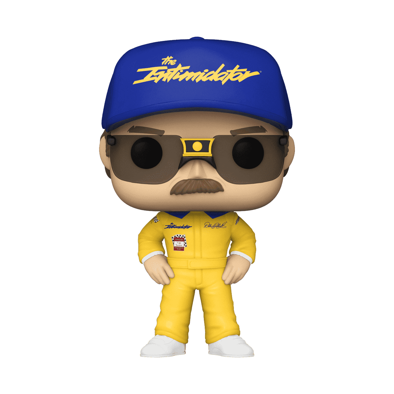 Race to the finish line! Pop! Dale Earnhardt Sr., in his yellow Wranglers uniform, will take first place in your NASCAR collection. Vinyl figure is approximately 4 in (10.2 cm) tall.