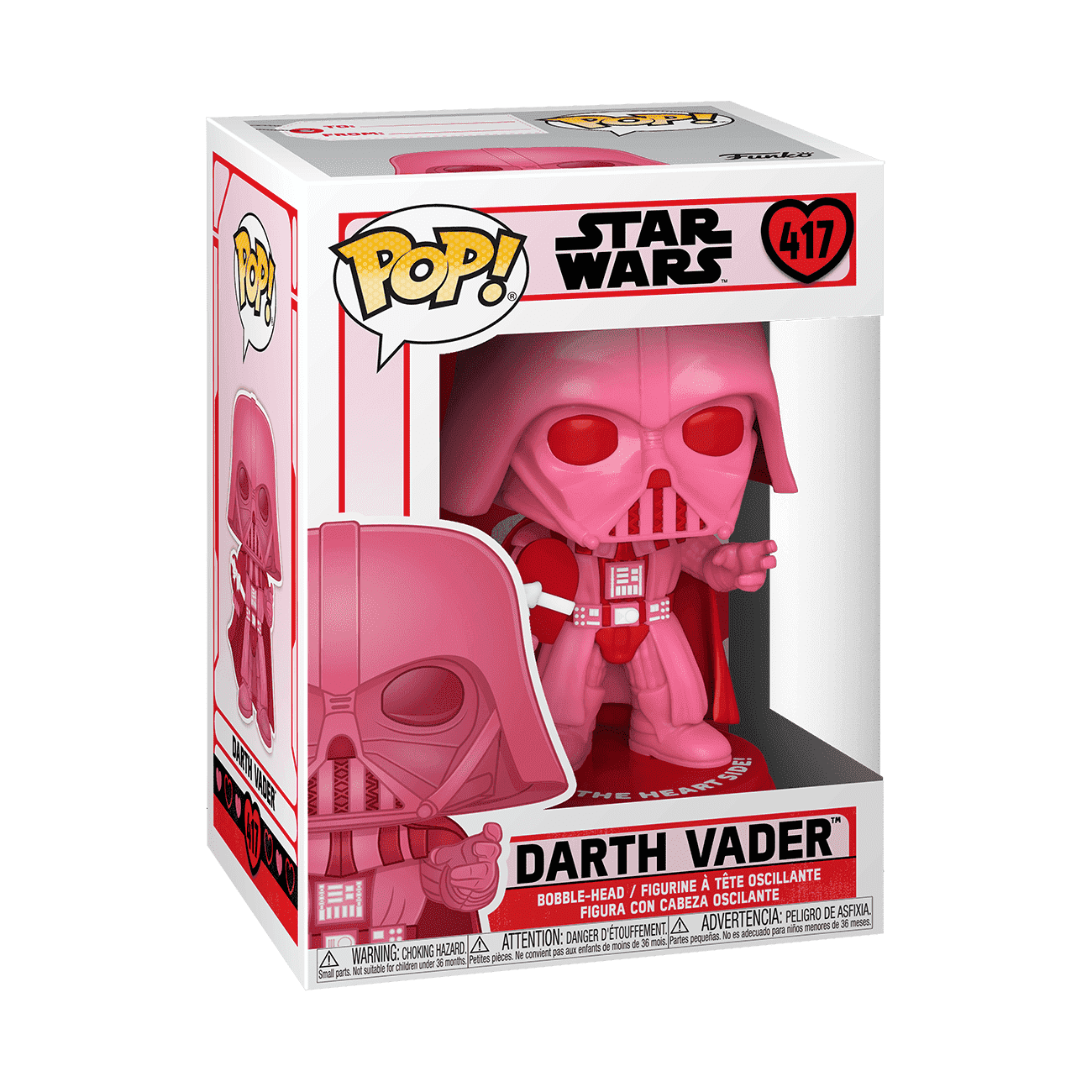 Sway your Valentine to join the "heart" side with the Valentine's Day Pop! Darth Vader. His red, pink, and white color scheme makes for a vibrant addition to any Star Wars collection, and there's a sweet message written at his feet. Vinyl bobblehead is approximately 4.5 in (11.4 cm) tall.