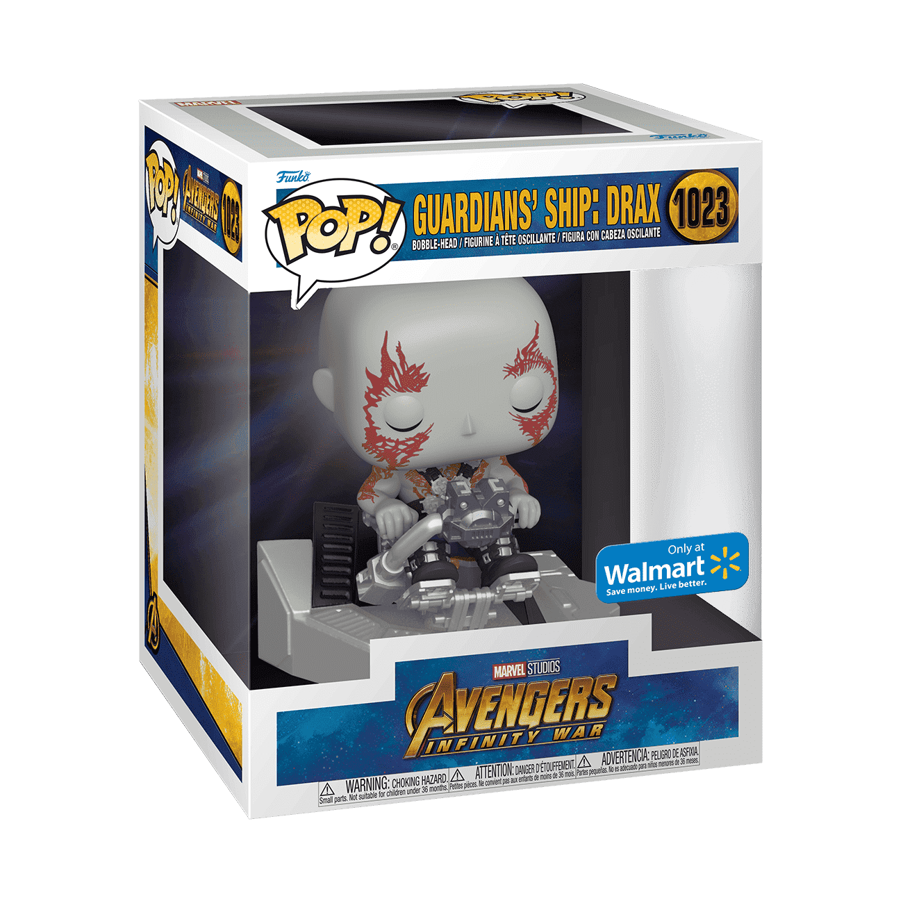 Feel the excitement of taking off on the Guardians’ ship with the exclusive Pop! Drax. Seated on a raised platform in a chair aboard the Guardians’ ship, Pop! Drax is ready for any challenge that might come the Guardians’ way. Expand your Marvel Studios’ Avengers Infinity War collection. Pop! Drax is the second of 6 in this Guardians of the Galaxy ship set. Collect them all! Vinyl bobblehead is 3.34-inches tall. Base is approximately 3-inches long.