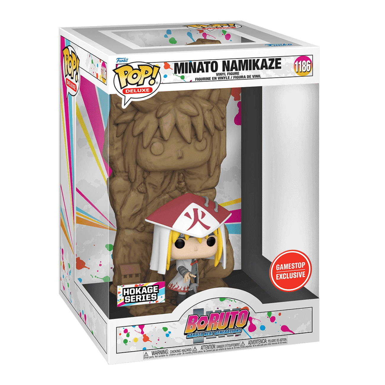 Build a formidable Boruto: Naruto Next Generations collection with Pop! Deluxe Minato Namikaze. GameStop exclusive Pop! Deluxe Minato Namikaze attaches to the base of a part of Hokage Rock, where rooftops and stairs lead to his face, carved on the rock behind him. Hashirama Senju envisioned Hokage Rock, so that it would stand guard over Hidden Leaf Village. Pop! Deluxe Minato Namikaze is one of 7 figures that connect to form the iconic structure. Collect all 7! Vinyl figure is approximately 9 in (22.9 cm) tall.
