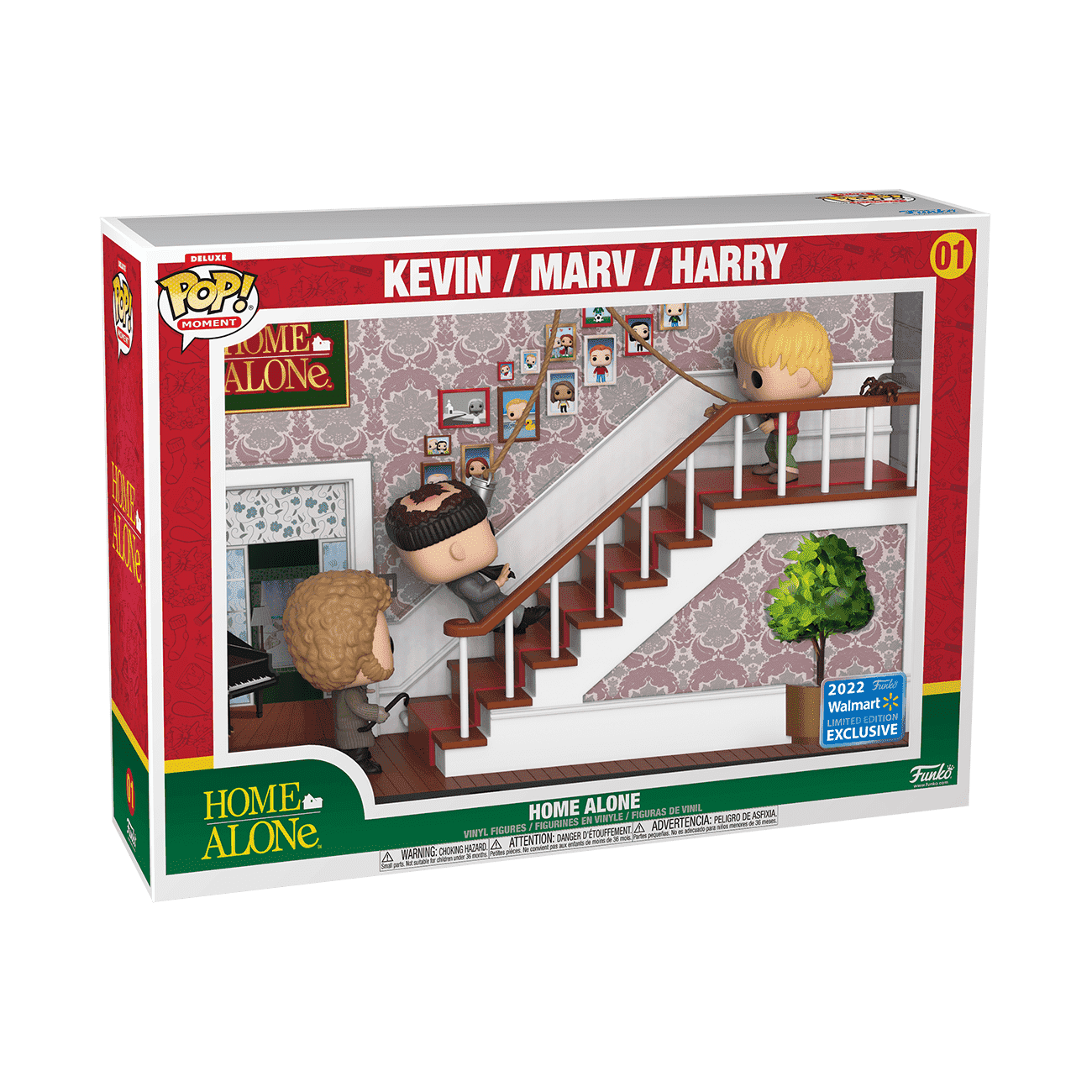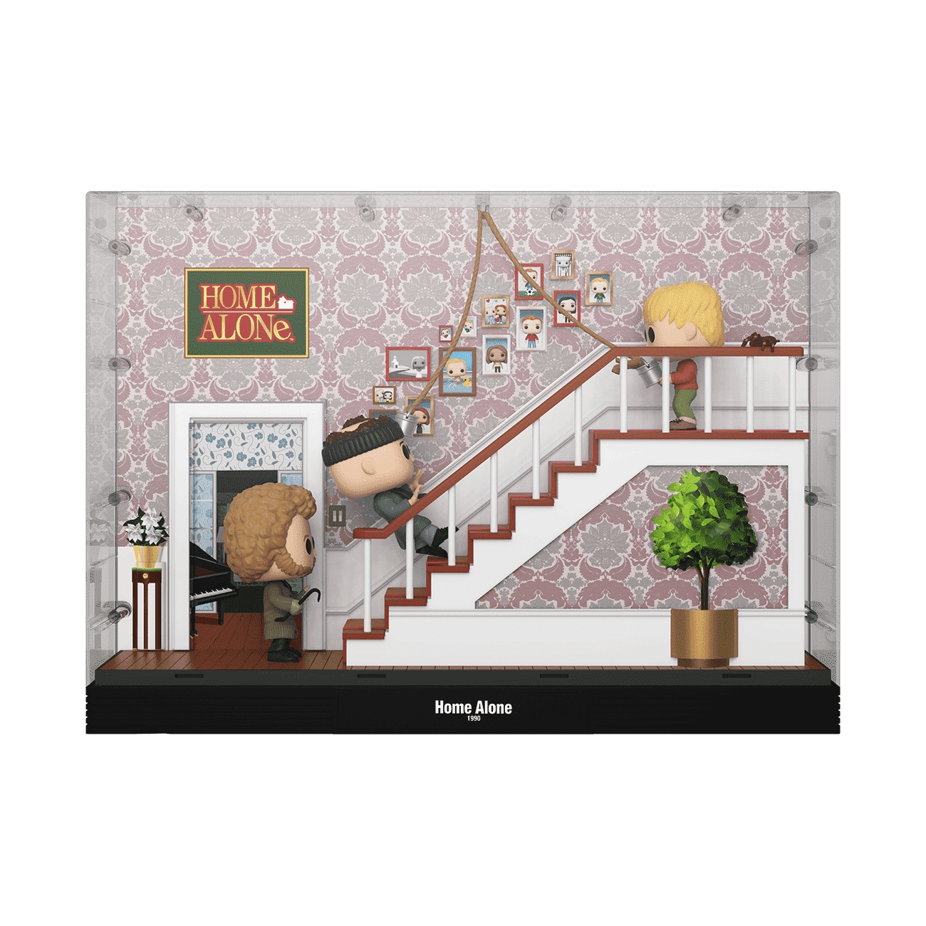 Take the stairs! Step up your Pop! Deluxe Moment collection with a Walmart-exclusive staircase scene from Home Alone. Pop! Marv & Pop! Harry stand on the staircase, while Pop! Kevin releases a heavy bucket of paint. Join in on the merry antics and expand your Pop! Movies Moment collection. Vinyl collectible is approximately 13-inches tall and 18-inches wide.