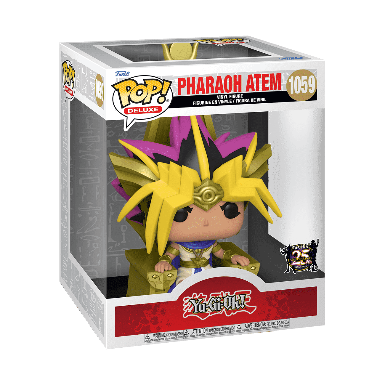 Solve the Millenniium Puzzle for your Yu-Gi-Oh! collection by adding Pop! Deluxe Pharaoh Atem to your display. Vinyl figure is approximately 6.75 in (17.1 cm) tall.