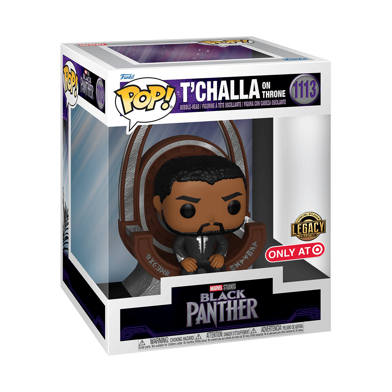 The King of Wakanda has taken his rightful place as the nation’s ruler. The exclusive Pop! T’Challa on Throne displays an unforgettable moment from Marvel Studios’ Black Panther. Who will this hero negotiate with in your collection? Collect him to complete your Black Panther Legacy set. Vinyl bobblehead is approximately 5.81 in (14.8 cm) tall.