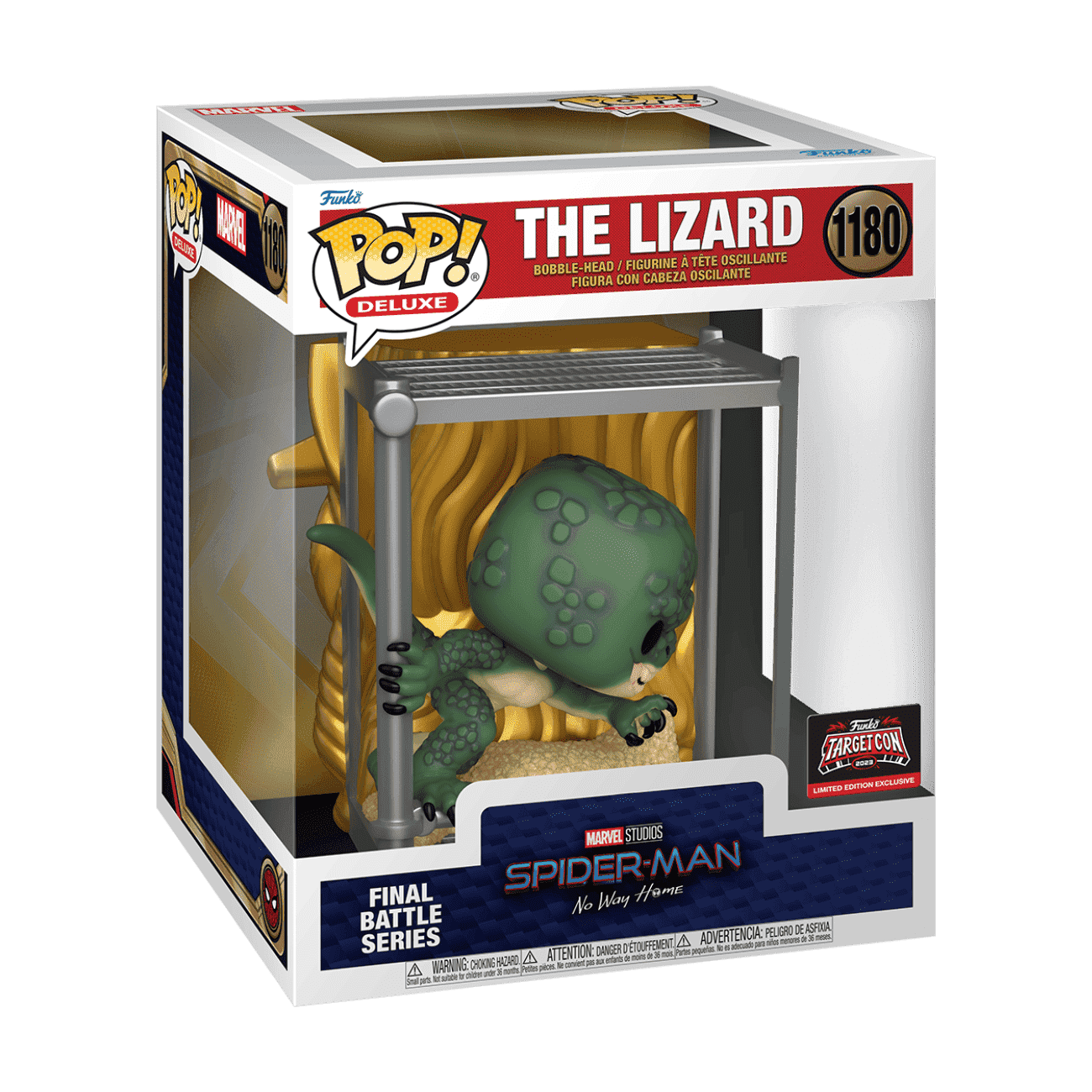 Scale new heights with this exclusive, Deluxe Pop! The Lizard as he weaves between the scaffolding around Lady Liberty’s head to battle Spider-Man. Help Spider-Man track down this villain by adding him to your Spider-Man: No Way Home collection. Build a scene by collecting all eight figures in this Final Battle Series. Vinyl bobblehead is approximately 5.25 in (13.3 cm) tall.