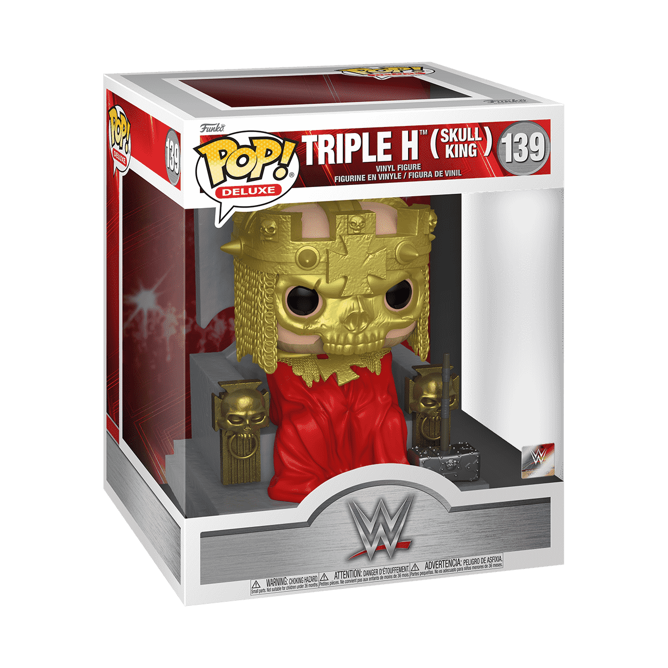 Pop! Triple H™ (Skull King) is ready to make a grand entrance in the ring! Complete your WWE set with this Deluxe Pop! Triple H™ (Skull King) as he sits on his throne! Who will this legendary wrestler challenge next in your collection? Vinyl figure is approximately 6.6 in (16.8 cm) tall.