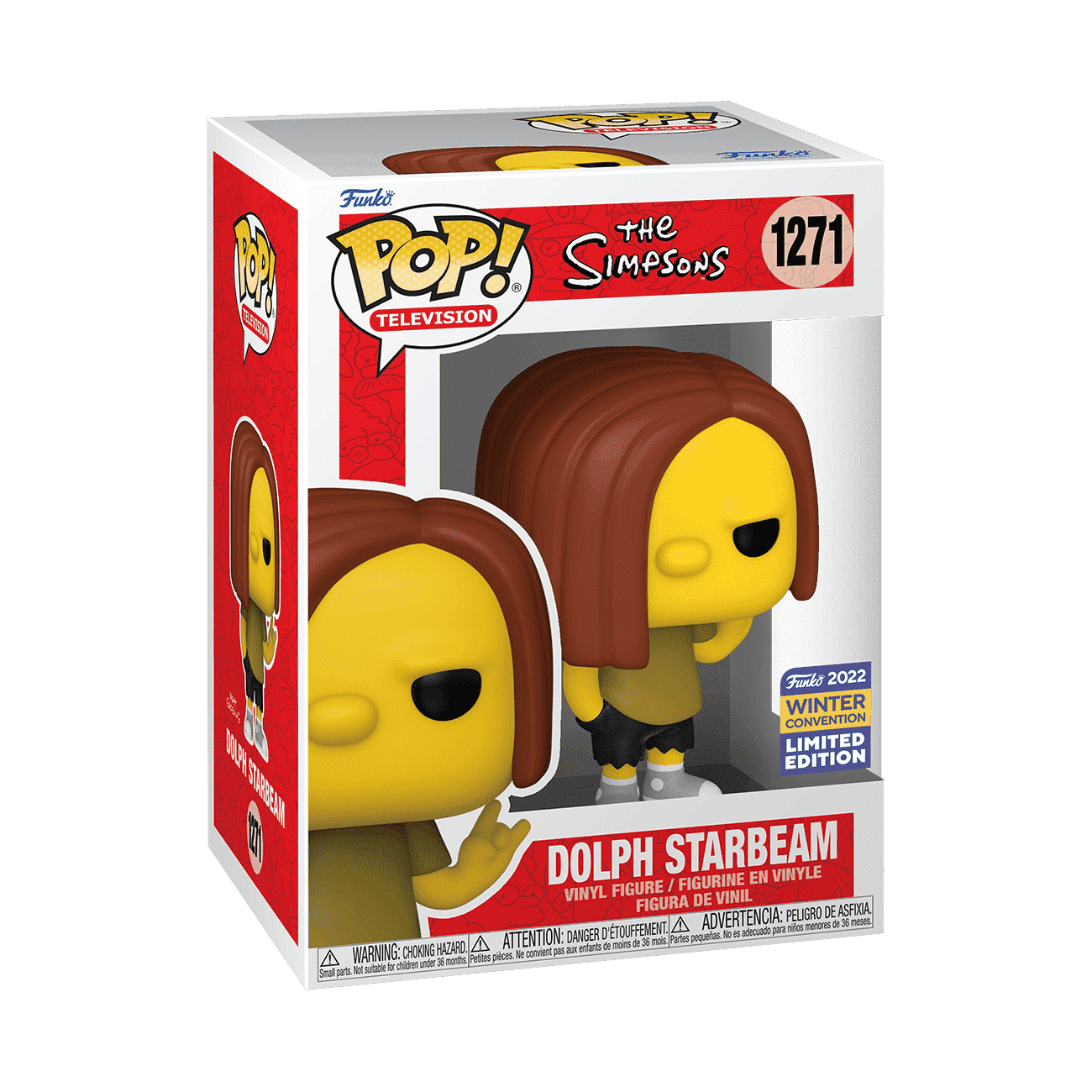 Hide your lunch money and take the long way around the playground at Springfield Elementary! Pop! Dolph Starbeam wants to join your collection! Build your Simpsons set with the 2022 CCXP exclusive Pop! Dolph Starbeam. Vinyl figure is approximately 3.75 in (9.5 cm) tall.