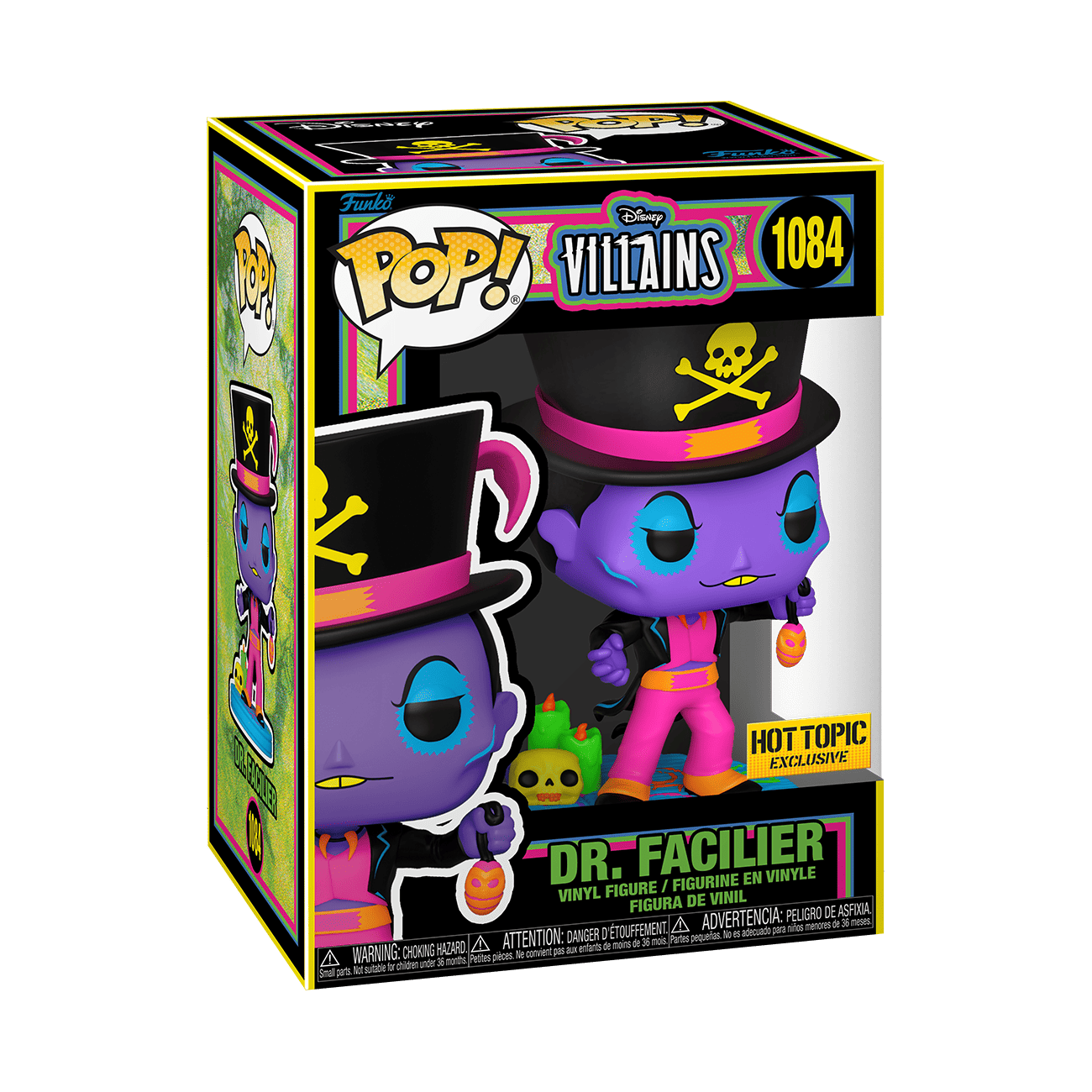 Ready to meet some friends on the other side? The exclusive Pop! Dr. Facilier is eager to make all your dreams come true with the help of his voodoo magic. This fun and vibrant coloring is designed to shine bright under blacklight. What schemes will this charismatic villain get up to in your Disney collection? Vinyl figure is approximately 5.5 in (14 cm) tall.