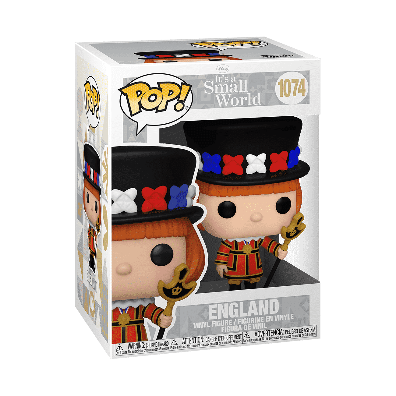 Bring a piece of the happiest place on earth home with the It's a Small World Funko Pop! collection. Start the set for your Disney collection with Pop! England. Vinyl figure is approximately 4.25 in (10.8 cm) tall.