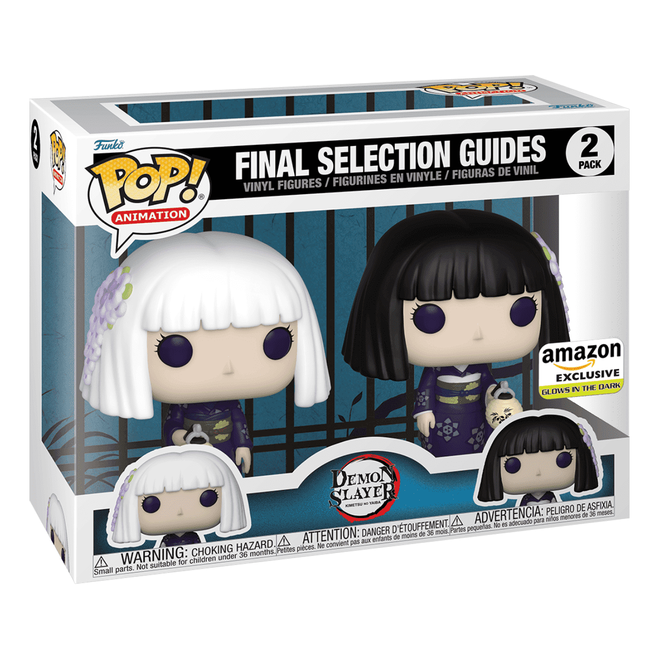 Only two of the Kamado family survived a demon attack, and now Tanjiro and Nezuko are out for revenge. Expand your Demon Slayer collection with this exclusive, glow-in-the-dark, 2-pack of the Final Selection Guides, Pop! Kanata and Pop! Kiriya. Vinyl figure is approximately 3.8 in (9.7 cm) tall.