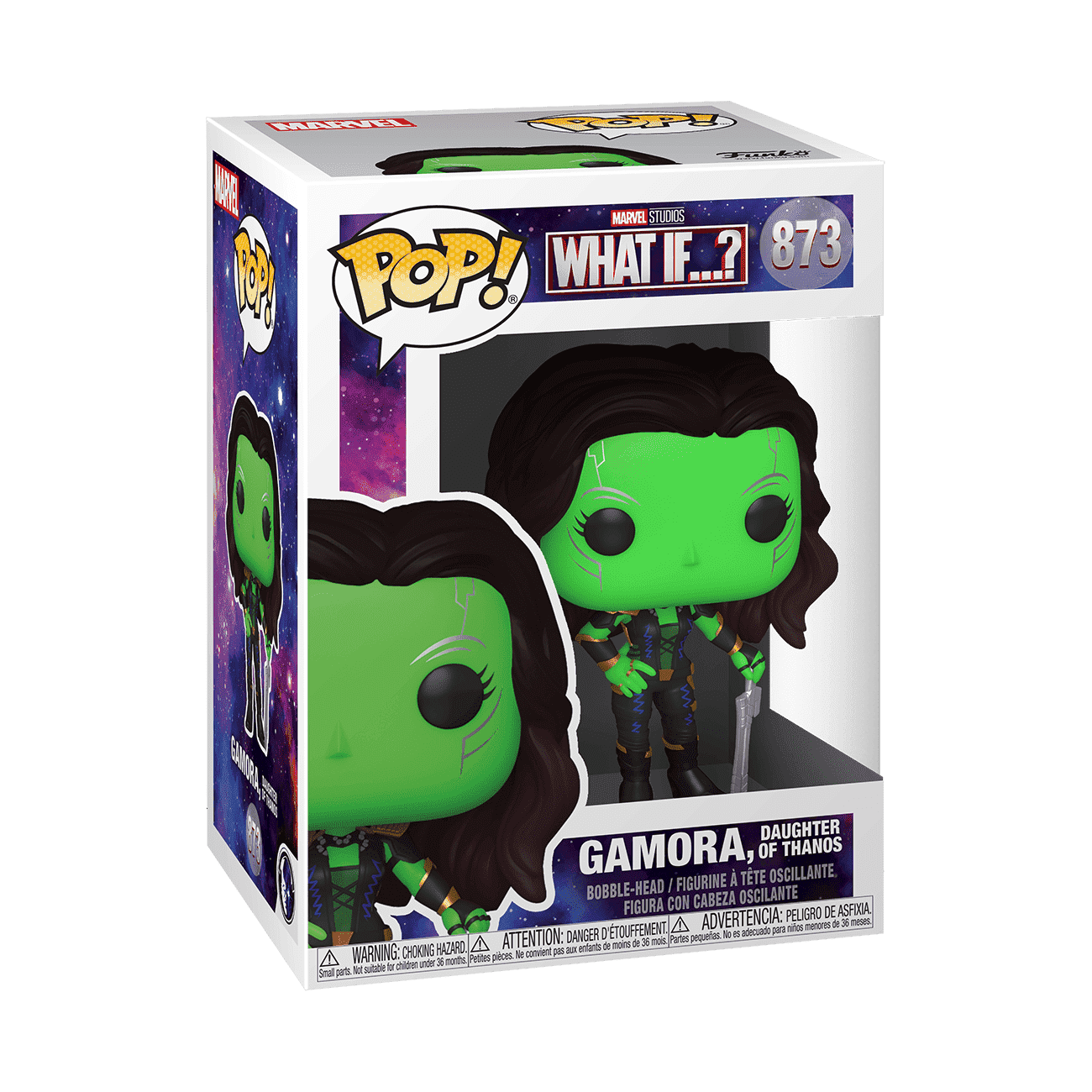 In the endless possibilities, venture to wonder and explore with Marvel's What If…? animated series. Collect Pop! Gamora, Daughter of Thanos to complete your What If…? set. Vinyl figure is approximately 3.75 in (9.5 cm) tall.