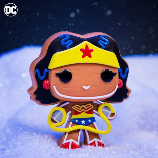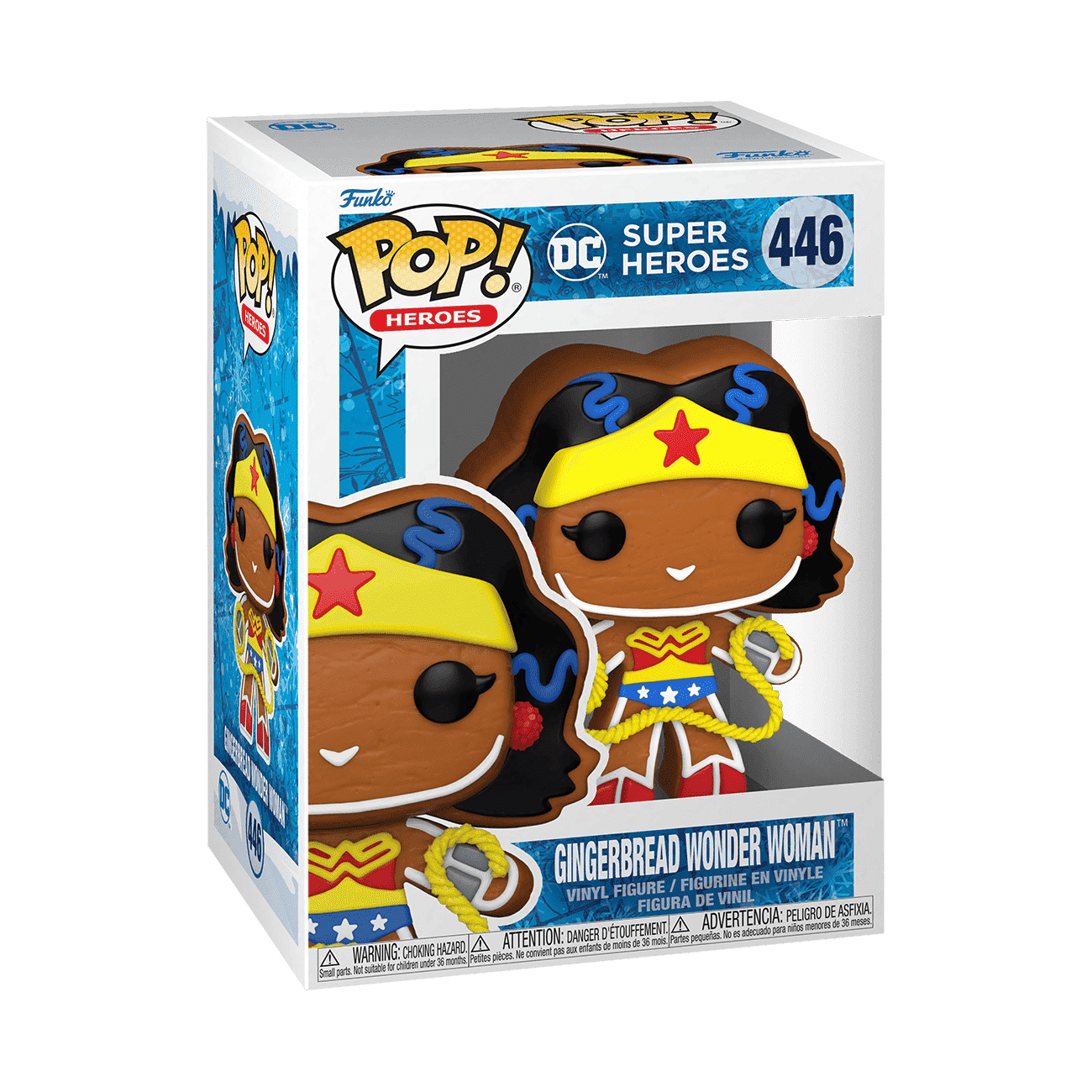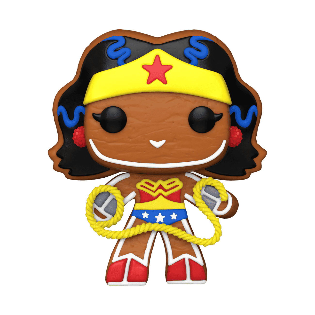 Stir up some holiday fun with Pop! Gingerbread Wonder Woman™. This super hero is popping off the cookie tray in a powerfully delightful way. Smooth red, blue, and yellow icing bring Pop! Gingerbread Wonder Woman to collectible confection perfection. Cook up a winning holiday team of crime fighters this season and grow your Pop! DC Heroes set. Vinyl figure is approximately 3.80 in (9.7 cm) tall.