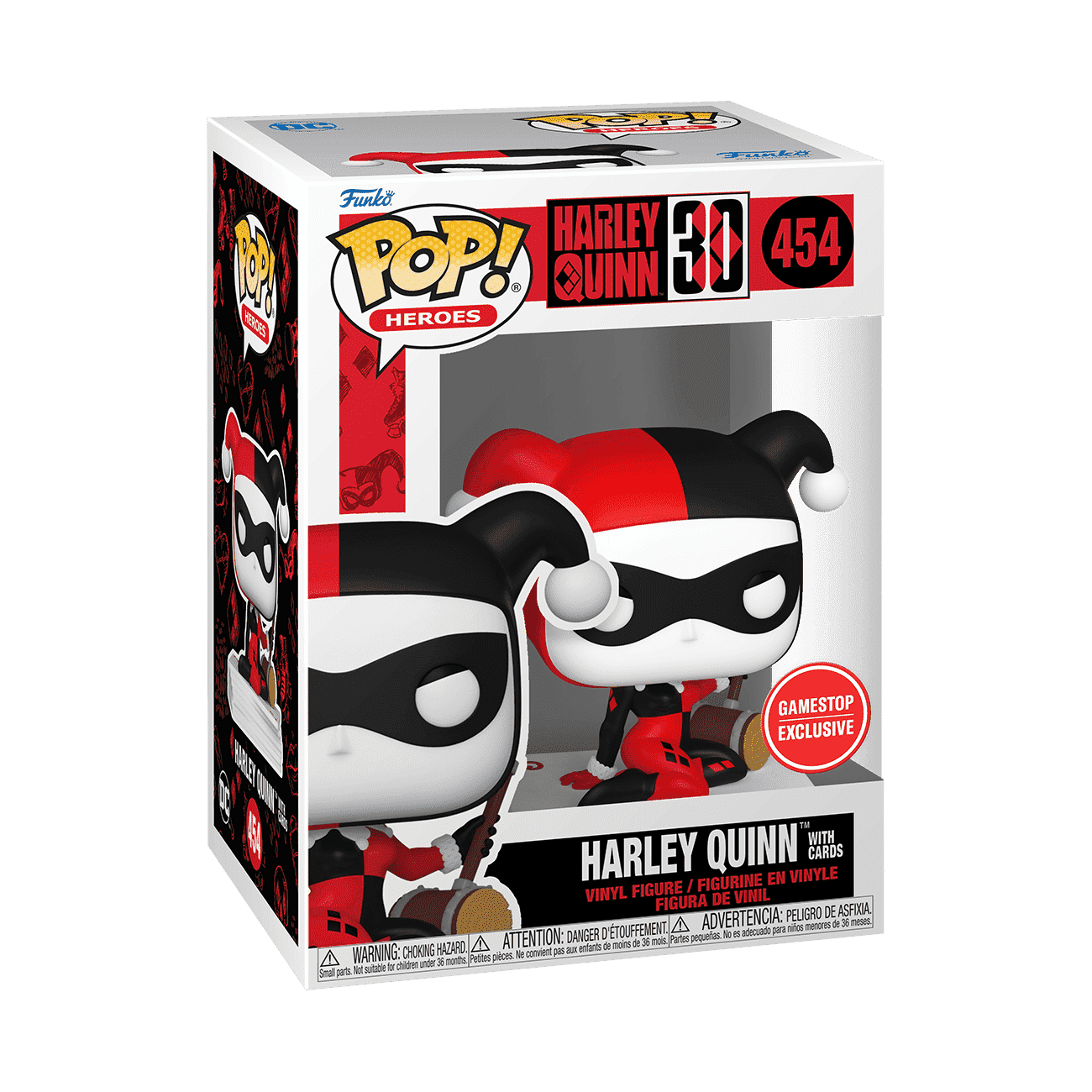 Harley Quinn is on the loose as the 30th Anniversary edition, exclusive, Pop! Harley Quinn with Cards! Will your DC collection be able to hold things together when Pop! Harley comes to crash the establishment? Vinyl figure is approximately 3.5 in (8.9 cm) tall.
