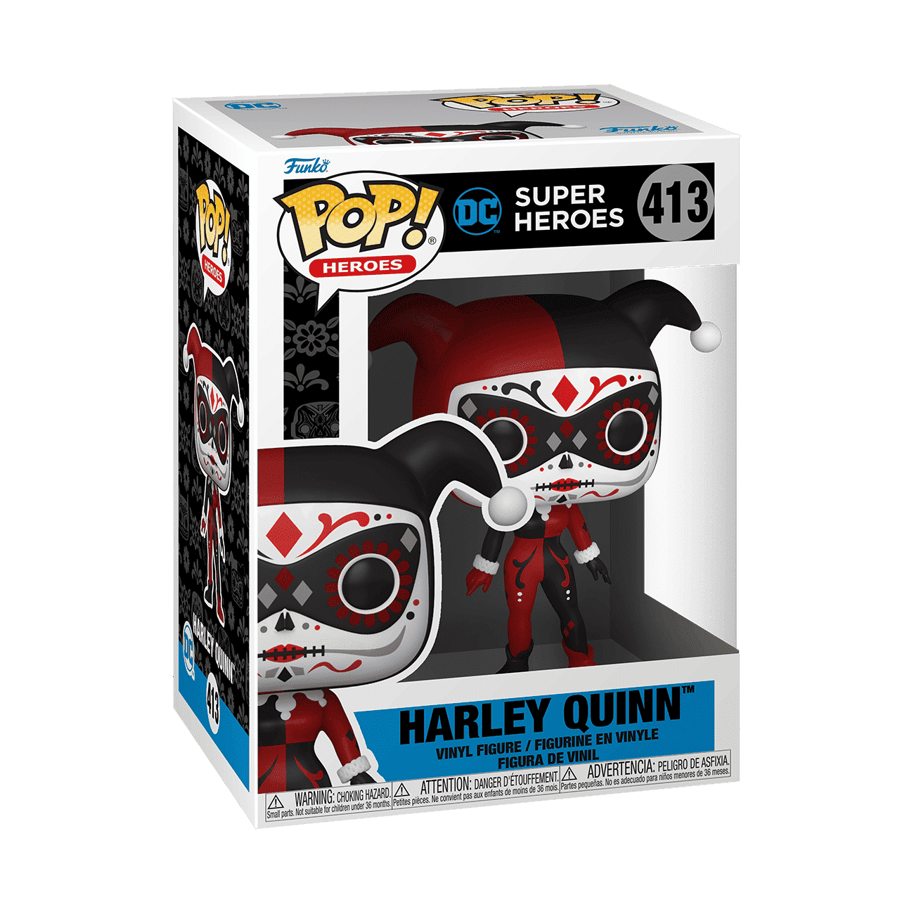 Decorate for your holiday traditions with a fun pop culture twist. It's the slightly spooky, colorful Dia De Los DC collection. Start your Dia De Los DC set with Pop! Harley Quinn. Vinyl figure is approximately 4 in (10.2 cm) tall.