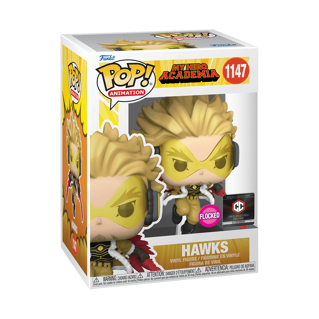 Take your My Hero Academia collection to new heights with the exclusive, flocked Pop! Hawks. Hawks, also known as Keigo Takami, is fast and skillful, rising to the highest Pro Hero ranks. With his signature red wings, Hawks looks ready to fly into action. Add Pop! Hawks to help the heroes-in-training in your My Hero Academia collection. Vinyl figure with built in stand is approximately 5.66 in (14.4 cm) tall.
