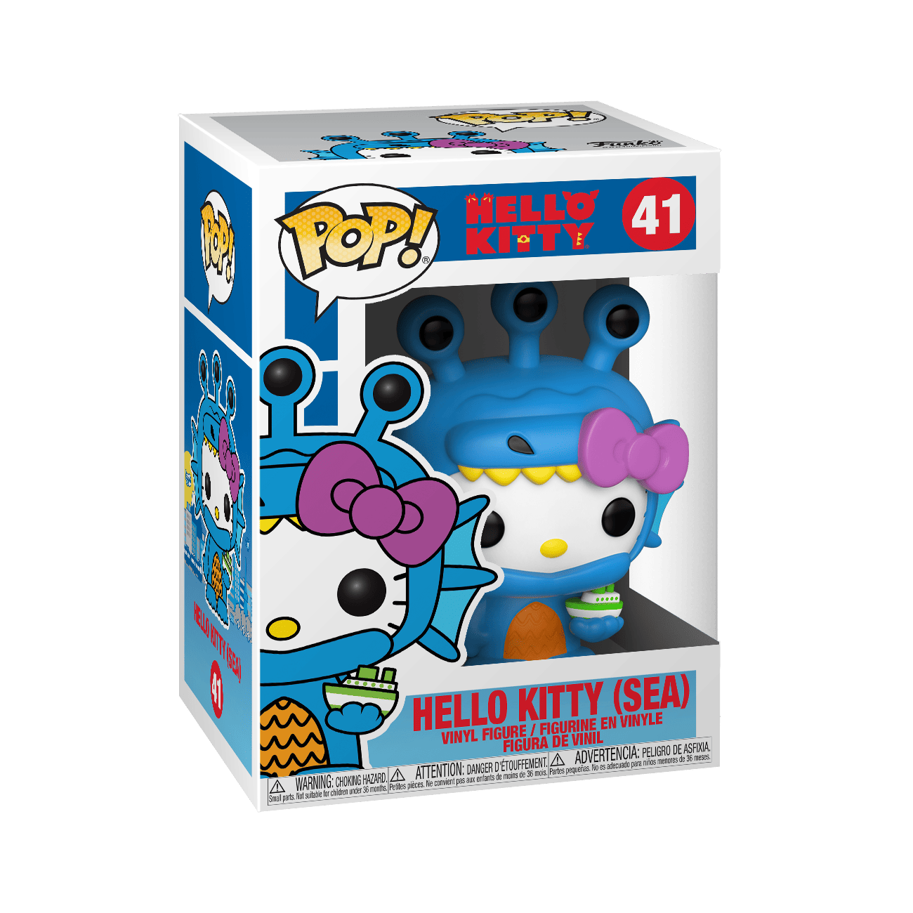 Kitty White is dressed as a Sea Kaiju. Gather up your Sanrio collection and have an epic kaiju showdown with Pop! Hello Kitty (Sea). Vinyl figure is approximately 4.15 in (10.5 cm) tall.