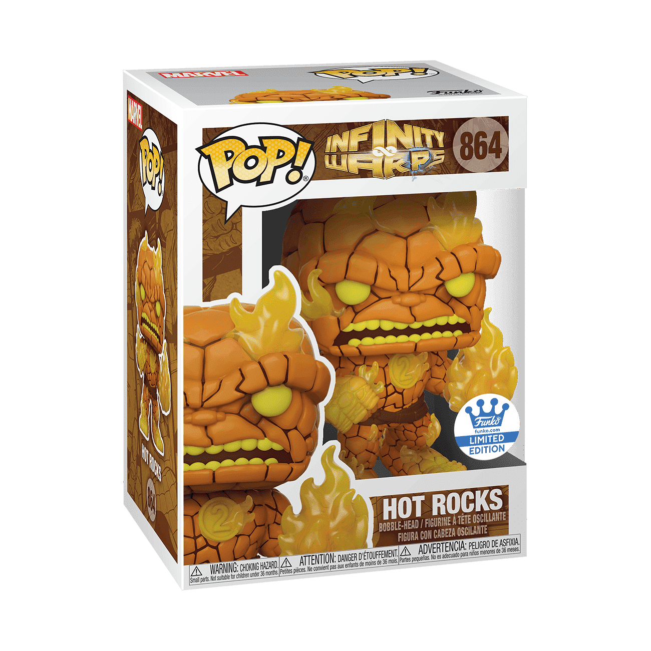 Infinity Warps create all new heroes and villains by fusing two characters together. When Fantastic Four members The Thing and Human Torch are combined, watch out for HOT ROCKS! Vinyl bobblehead is approximately 3.75 in (9.5 cm) tall.