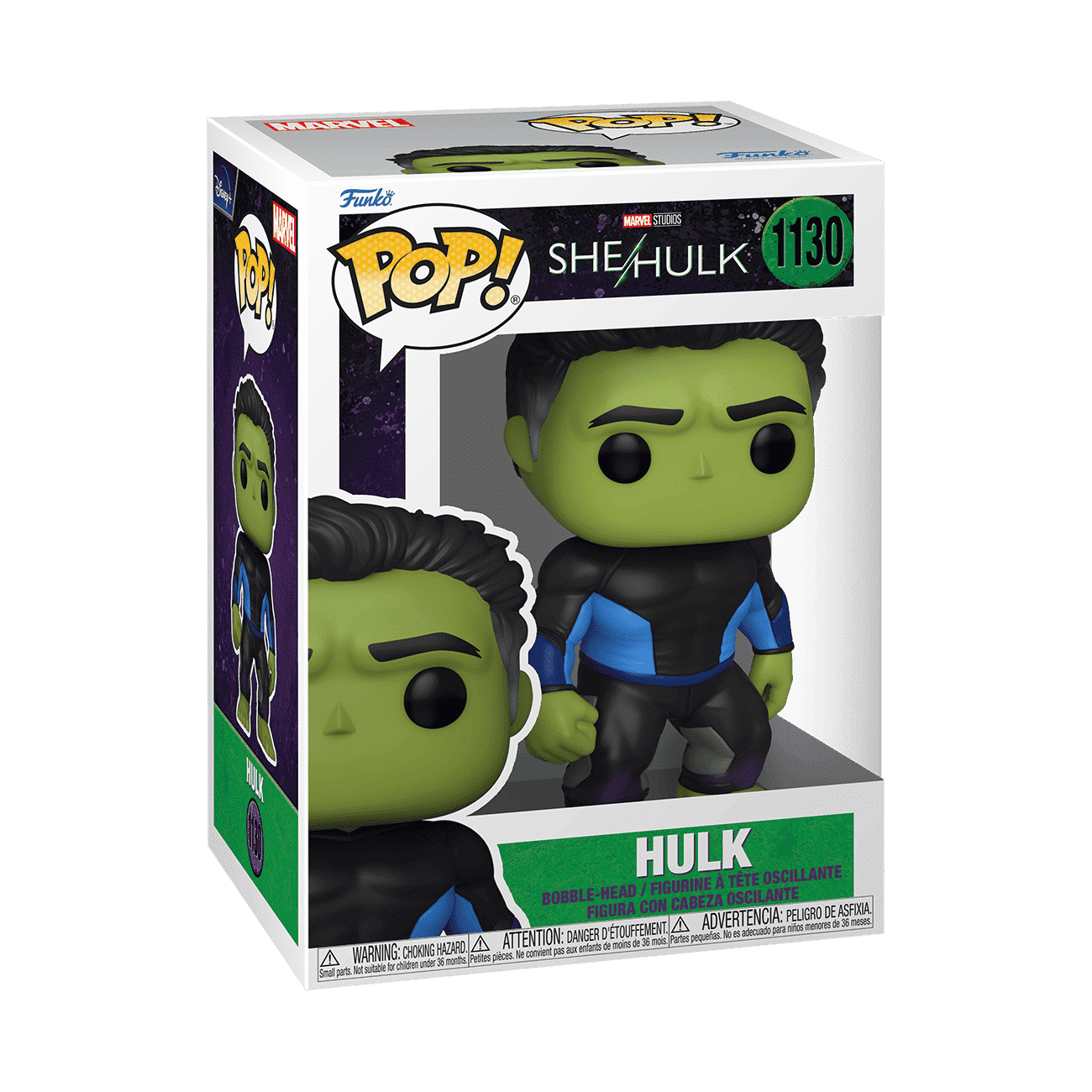 Smash your Marvel collection with Pop! Hulk. Pop! Hulk is looking to strengthen your set and shake things up. Team up with your favorite heroes and add Pop! Hulk to grow your Marvel Studios’ She-Hulk: Attorney at Law collection. Vinyl bobblehead is approximately 5 in (12.7 cm) tall.