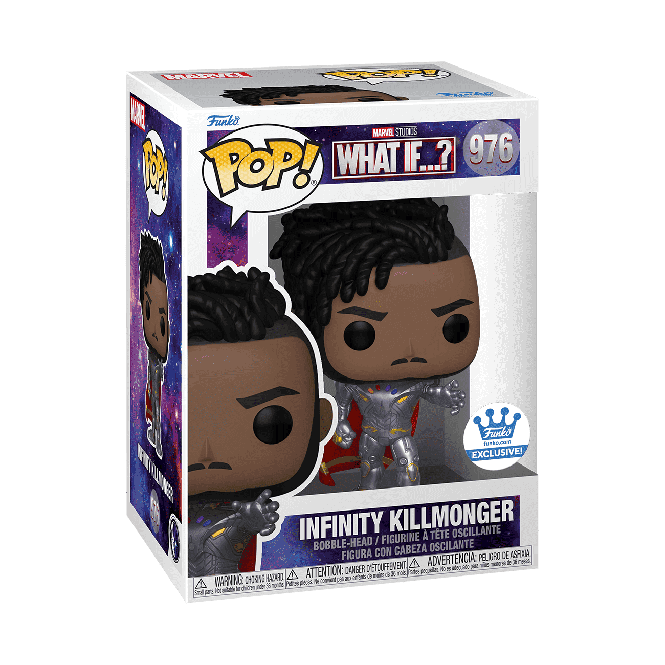 In the endless possibilities, venture to wonder and explore with Marvel Studios’ What If…? animated series. Collect this Funko-exclusive Pop! Infinity Killmonger to complete your What If…? set. Vinyl bobblehead is approximately 4.25 in (10.8 cm) tall.