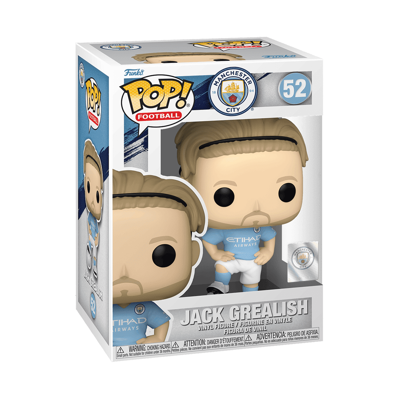 Take to the pitch with Pop! Jack Grealish as he scores a winning goal! Wearing his blue Manchester City uniform, Pop! Jack Grealish is ready to shoot for success in your association football collection. Vinyl figure is approximately 4.54 in (11.5 cm) tall.