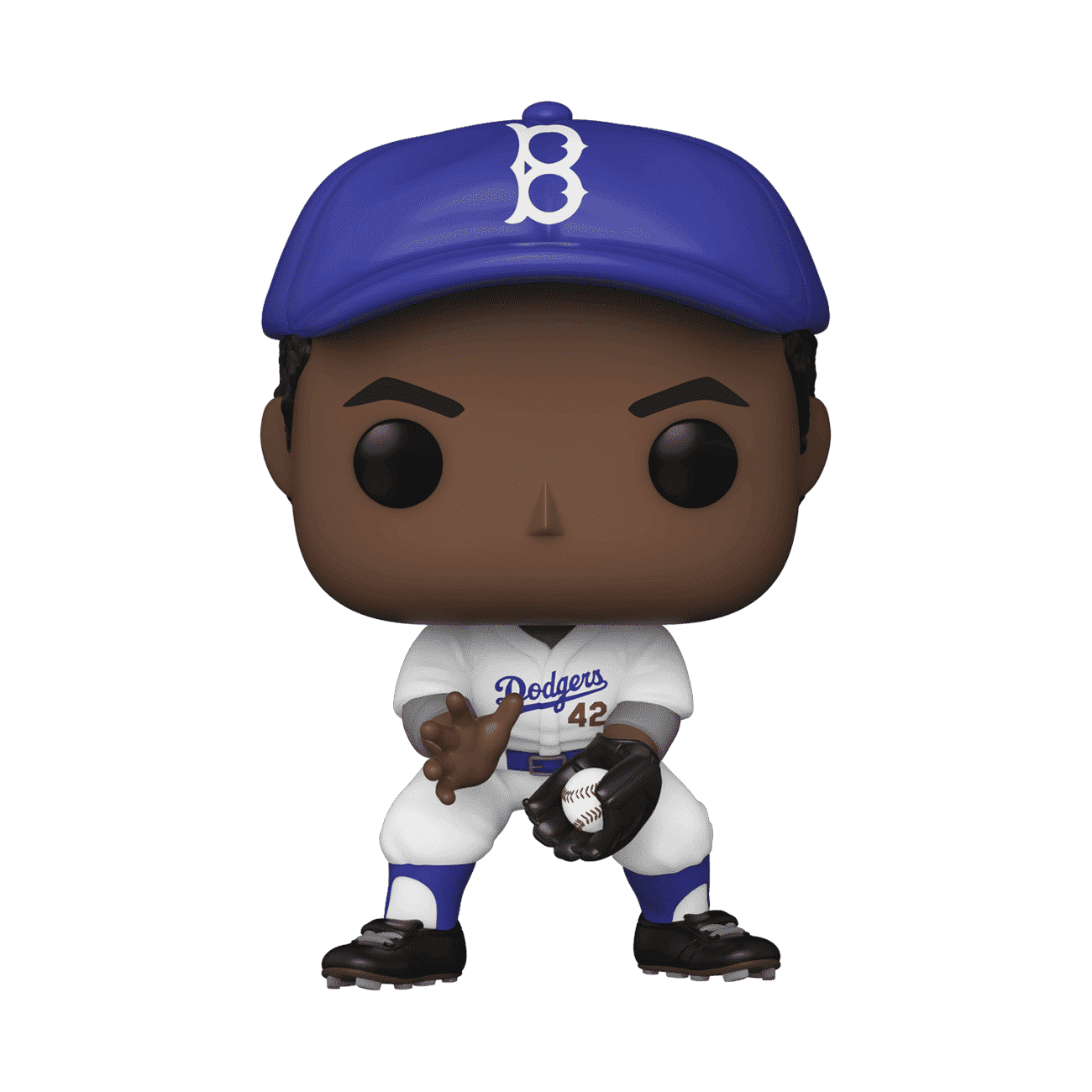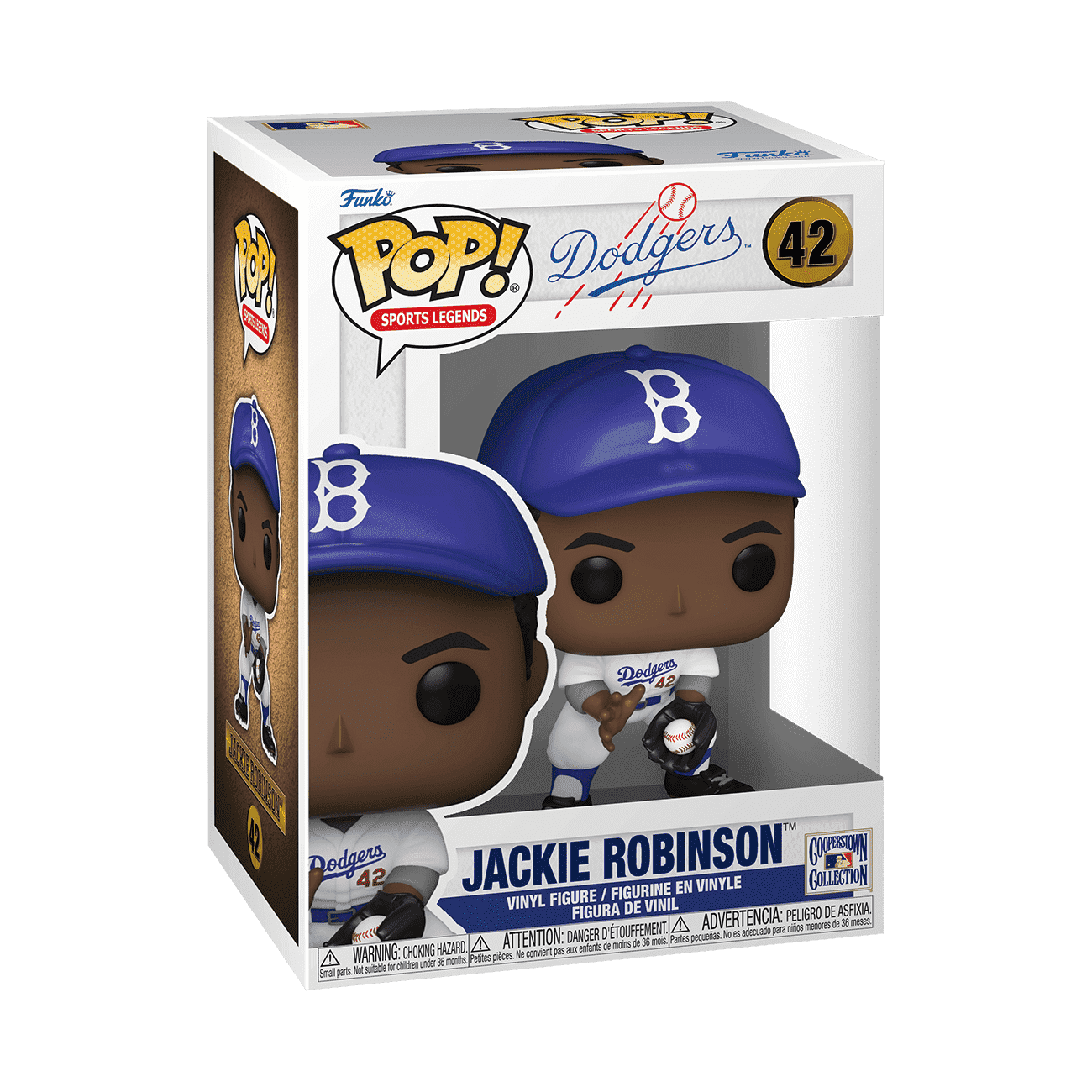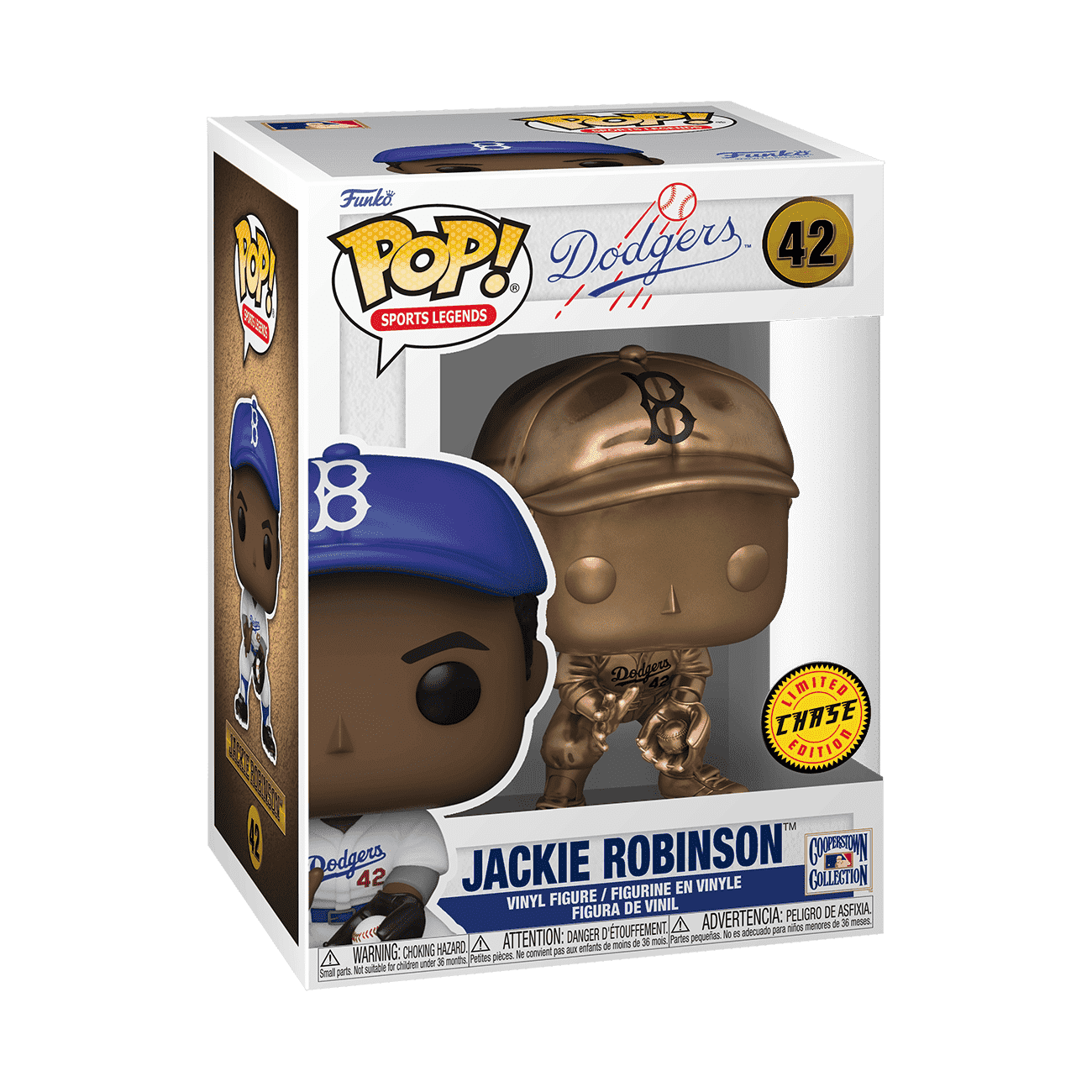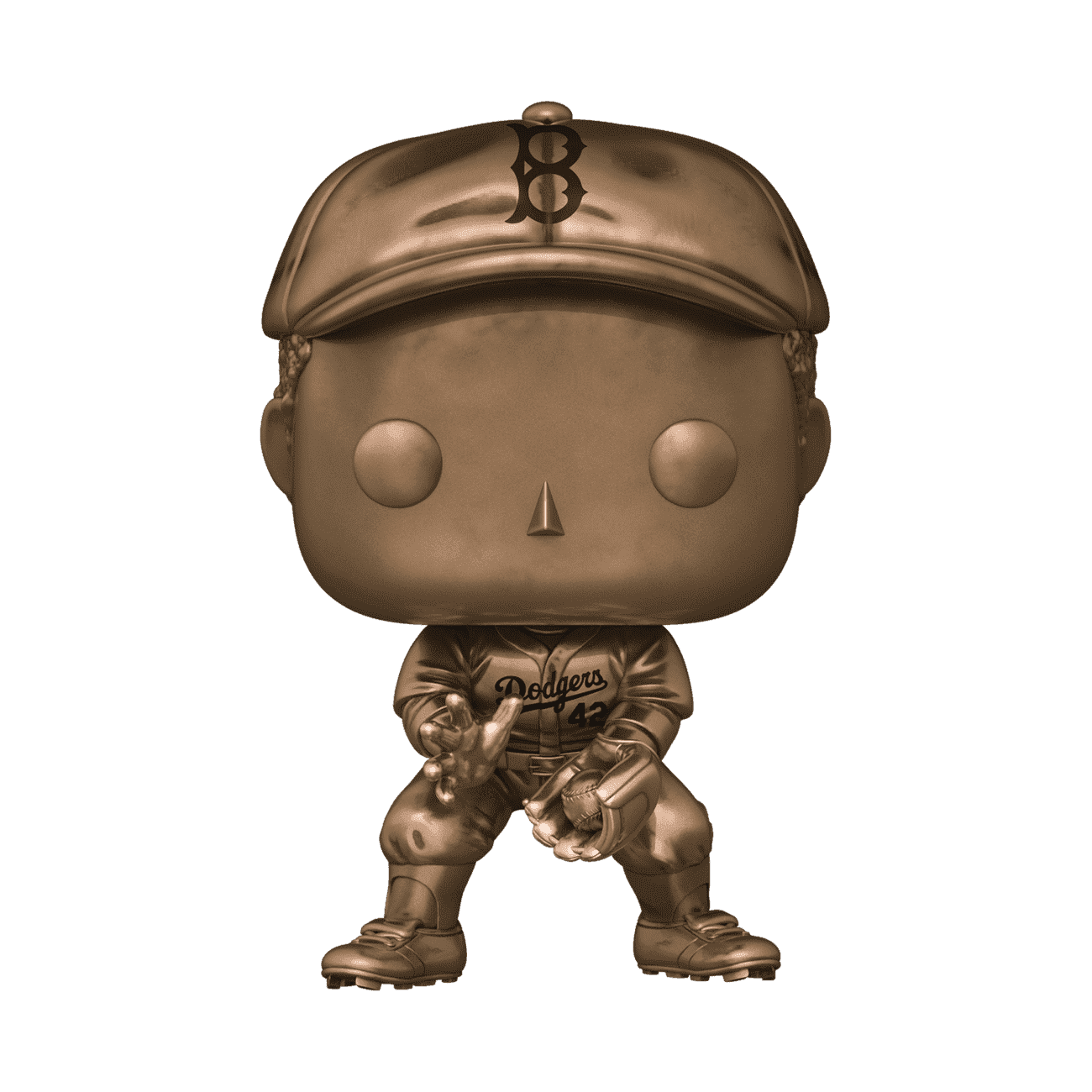 Celebrate Jackie Robinson’s many achievements and contributions with this Jackie Robinson Pop! A ground-breaking athlete elected to the National Baseball Hall of Fame in 1962 and awarded NAACP’s prestigious Spingarn Medal, Jackie Robinson is an iconic athlete who championed racial equality. In this Pop! version, Jackie Robinson wears his Dodgers uniform. There’s a 1 in 6 chance you may find the chase version, which is styled like a bronze statue. Vinyl figure is approximately 4 in (10.2 cm) tall.