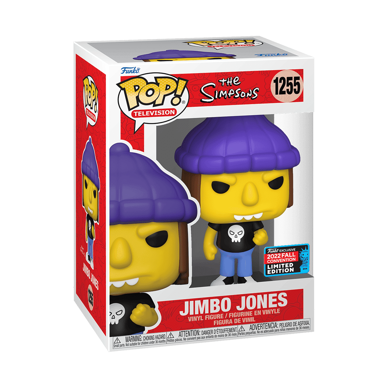 Hide your lunch money and take the long way around the playground! Pop! Jimbo Jones wants to join your collection, but Bart might be able to distract him every once in a while. Build your Simpsons collection with 2022 New York Comic-Con exclusive Pop! Jimbo Jones. Vinyl figure is approximately 4.37 in (11.1 cm) tall.