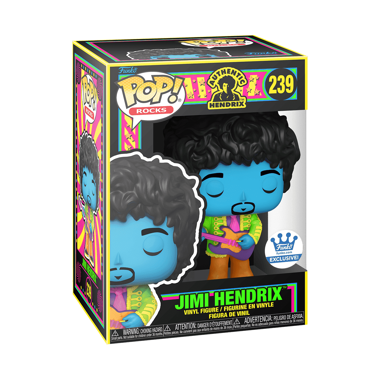 Electric guitar virtuoso, Jimi Hendrix has been given the Funko Pop! treatment. Capture the groovy rock star's passionate performances for your music collection with the Funko exclusive black light edition Pop! Jimi Hendrix! Vinyl figure is approximately 4.5 in (11.4 cm) tall.