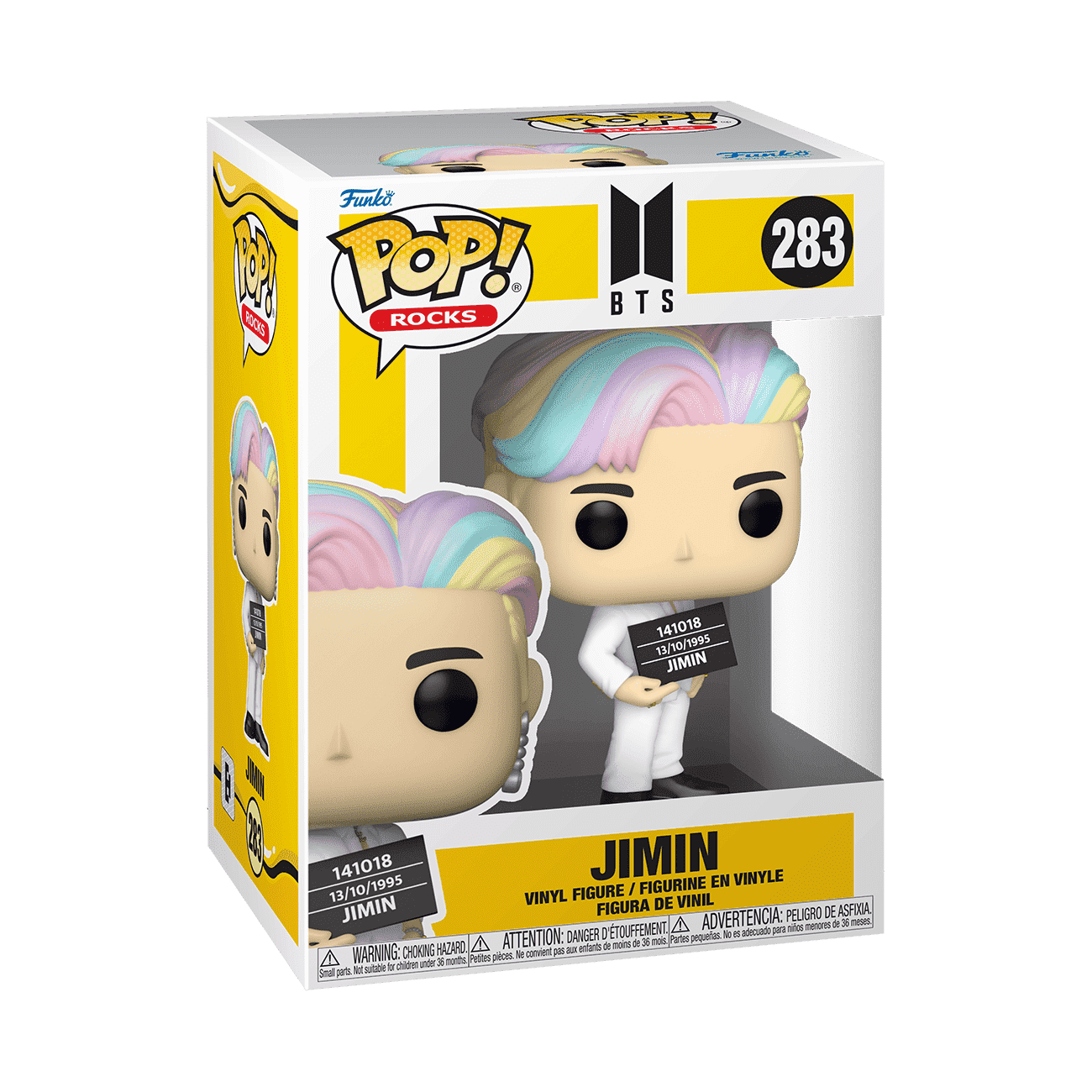 Your music collection may melt at the sight of these Pop! figures for BTS! Pop! Jimin strikes a criminally stunning pose while holding a mugshot sign. Invite this member of BTS to stage a performance in your collection as a Funko Pop! figure! Vinyl figure is approximately 4.1 in (10.4 cm) tall.
