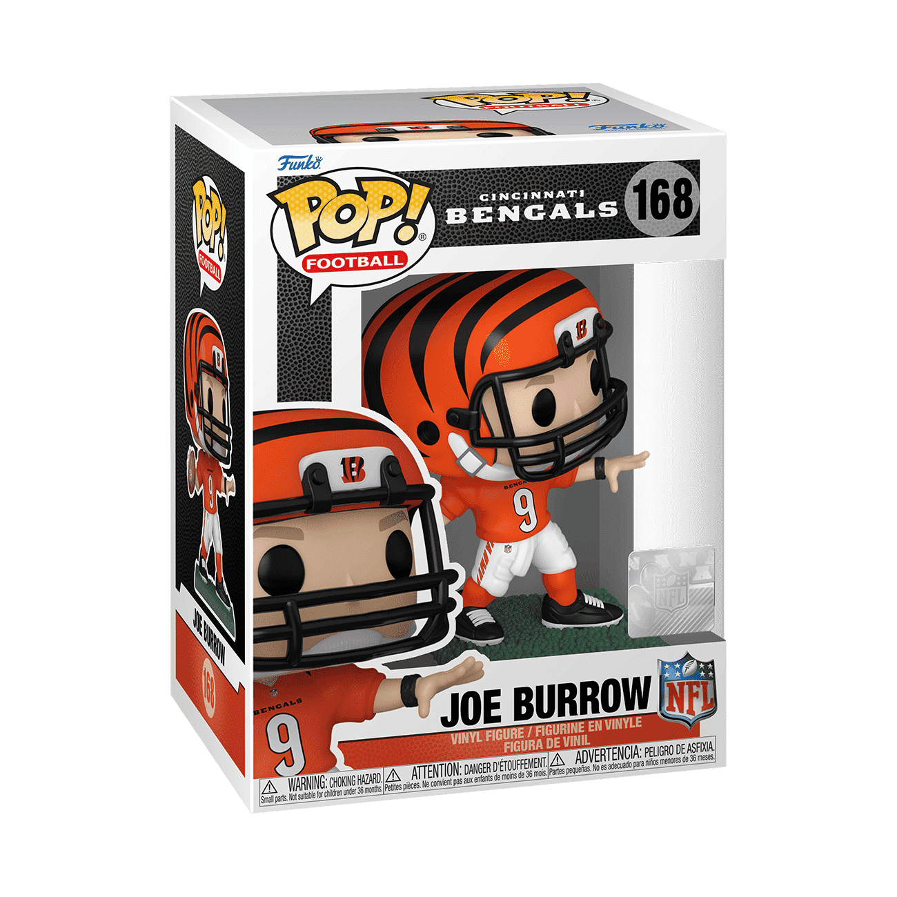Take to the field with Pop! Joe Burrow as he scores a game-winning touchdown! Wearing his orange Cincinnati Bengals jersey, Pop! Joe Burrow is ready to intercept your NFL collection. Vinyl figure is approximately 4.15 in (10.5 cm) tall.