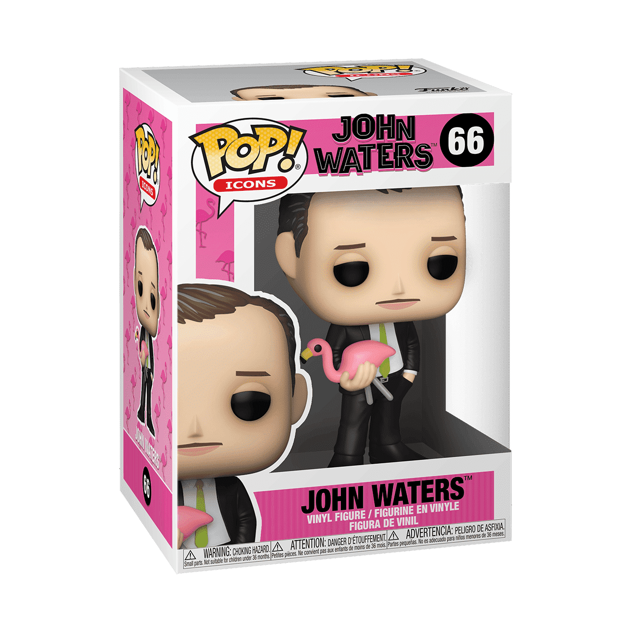 Cult film fans will be in the pink when they feast their eyes on the Pop! Icons John Waters stylized vinyl figure! Bring the legendary director home today! Vinyl figure is approximately 3.75 in (9.5 cm) tall.