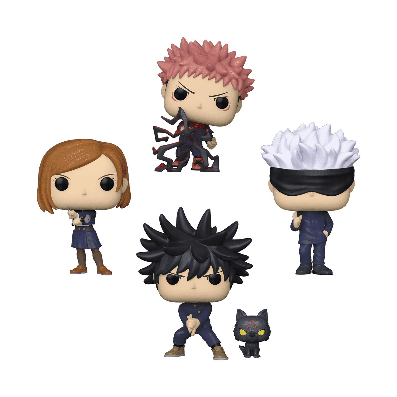 Class is in session! Learn from the strongest jujutsu sorcerer as he teaches the nuances of cursed energy and combat. The exclusive Jujutsu Kaisen Pop! 4-Pack features Pop! Yuji Itadori with glow-in-the-dark details, Pop! Megumi Fushiguro with Divine Dog, Pop! Nobara Kugisaki, and Pop! Satoru Gojo. Reach your full potential by adding the Jujutsu Kaisen Pop! 4-Pack to your anime collection today.