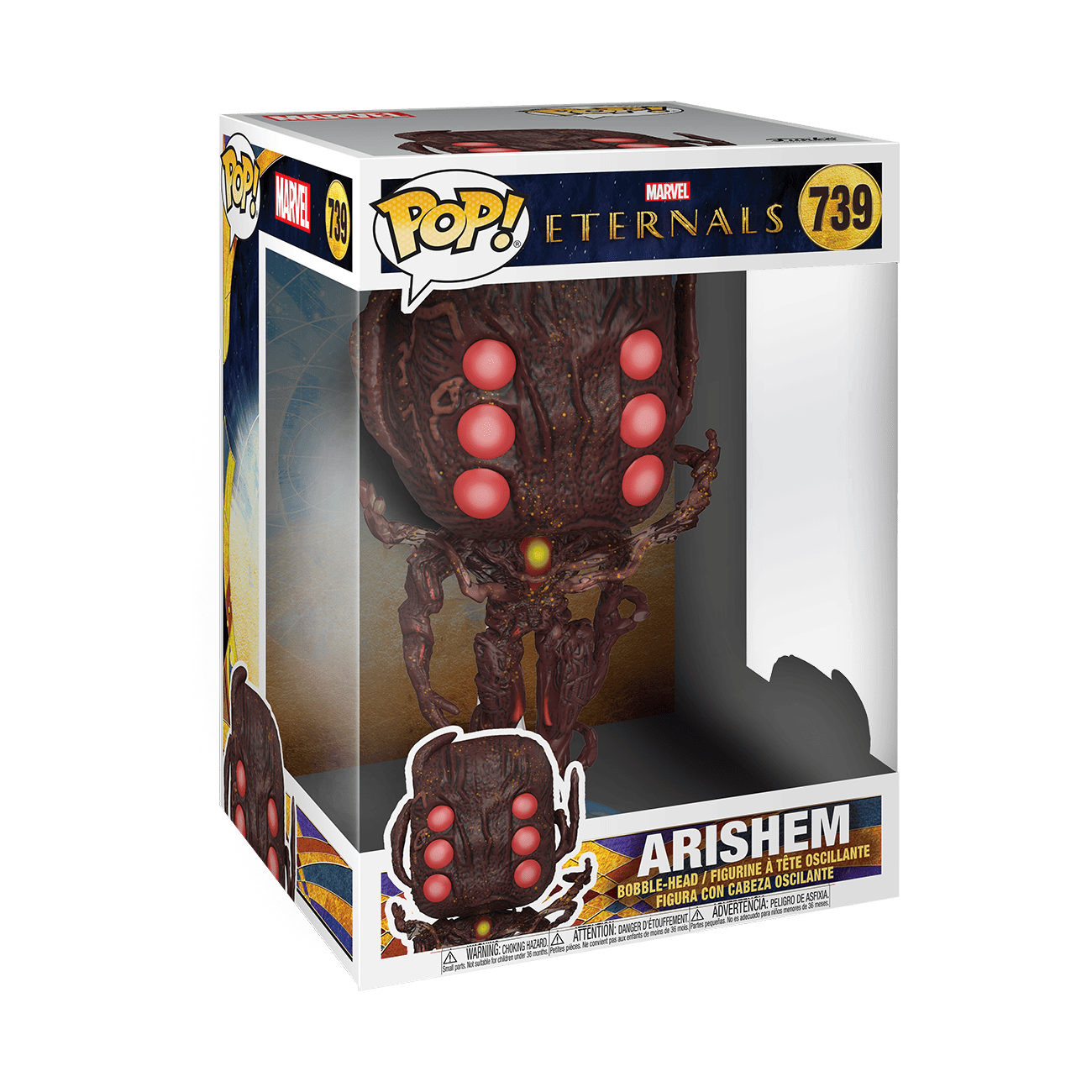 The Eternals live hidden among humans, but emerge from hiding to aid mankind. How will your collection fair when Jumbo Pop! Arishem to arrives to the set? Vinyl bobblehead is 10 in (25.4 cm) tall.