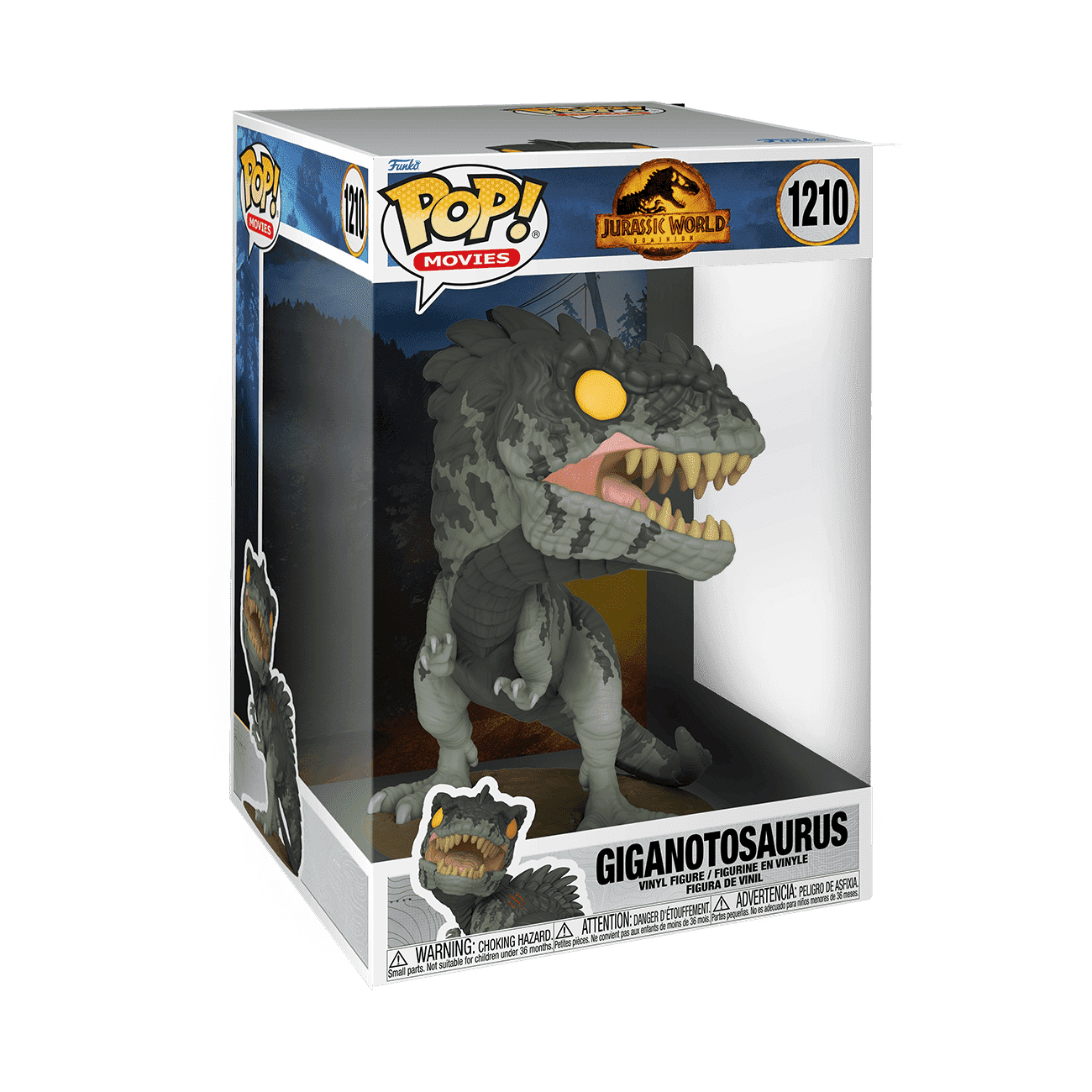 A big discovery is roaring your way! Capture Pop! Jumbo Giganotosaurus for your Jurassic World: Dominion collection. Pop! Jumbo Giganotosaurus wants to follow you home and play a big role in expanding your set. Add some adventure and excitement with Pop! Jumbo Giganotosaurus. Vinyl figure is approximately 10 in (25.4 cm) tall.