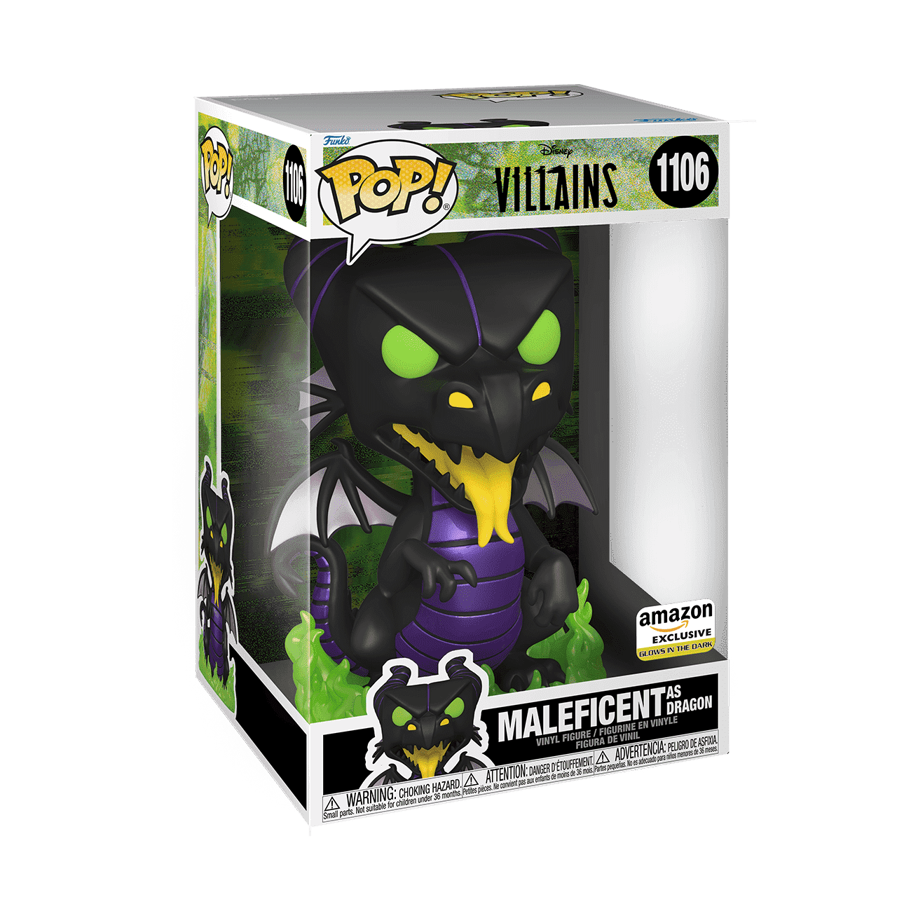 Fueled by rage, Maleficent has transformed into a dragon. Add the exclusive, glow-in-the-dark, Jumbo Pop! Maleficent as a Dragon to your collection of Disney Villains. Vinyl figure is approximately 10.75 in (27.3 cm) tall.